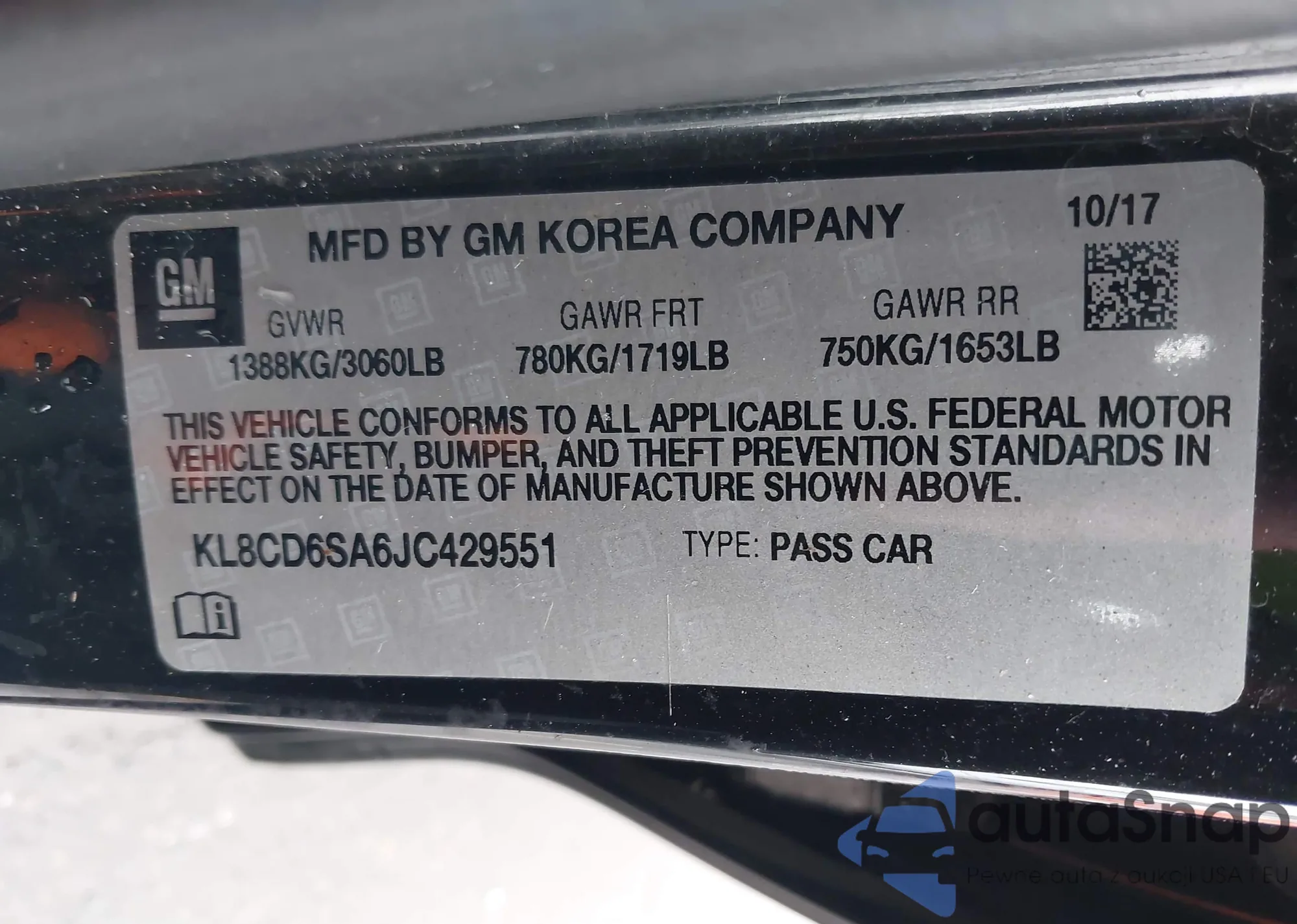 • VIN KL8CD6SA6JC429551