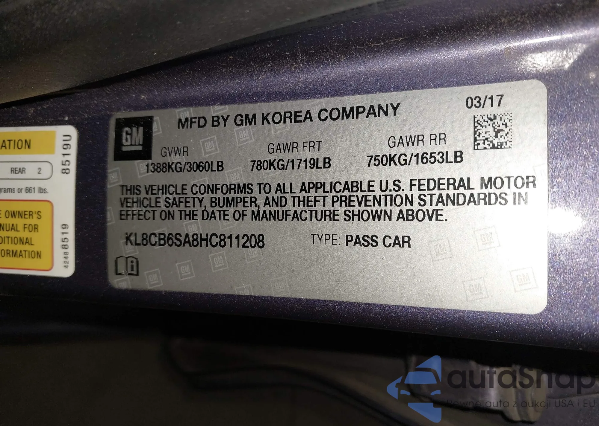 • VIN KL8CB6SA8HC811208