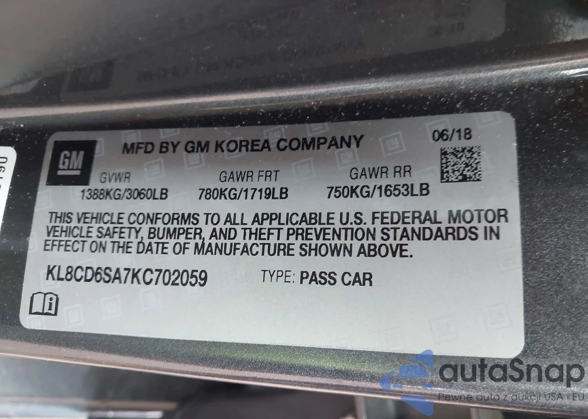 • VIN KL8CD6SA7KC702059