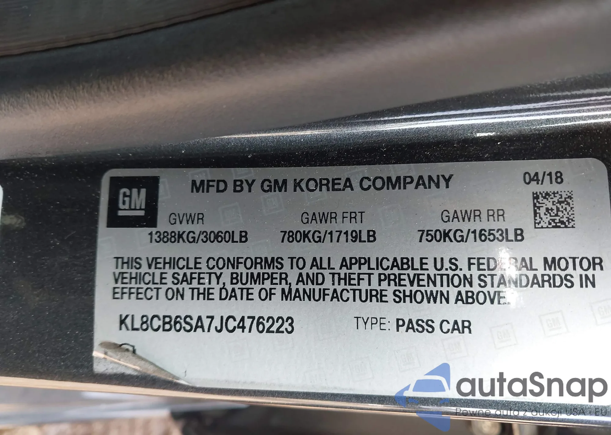 • VIN KL8CB6SA7JC476223