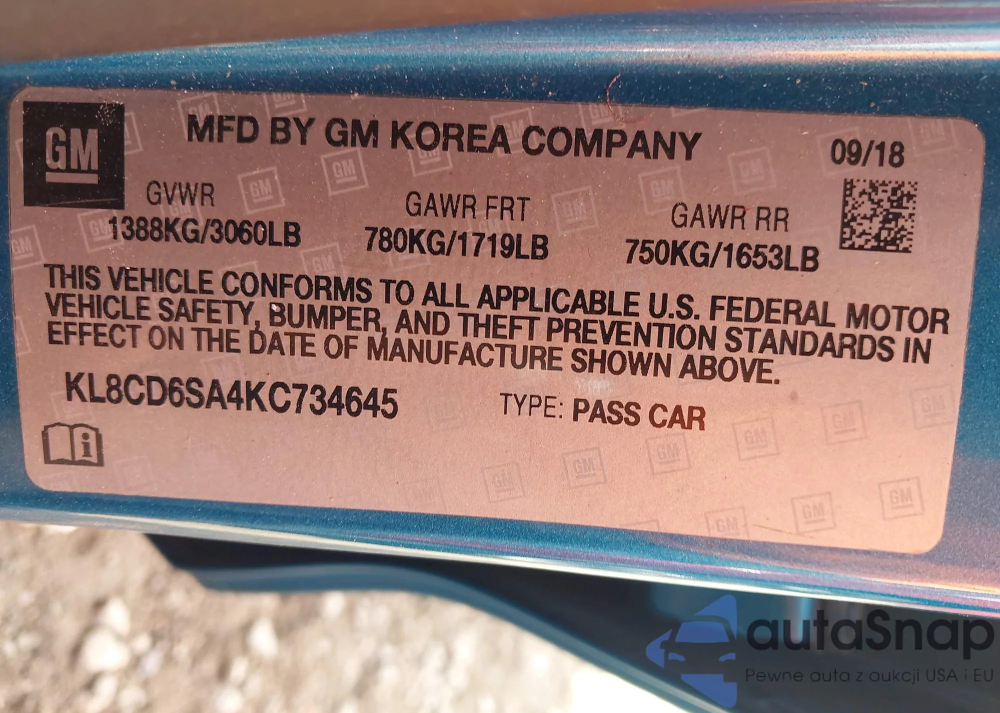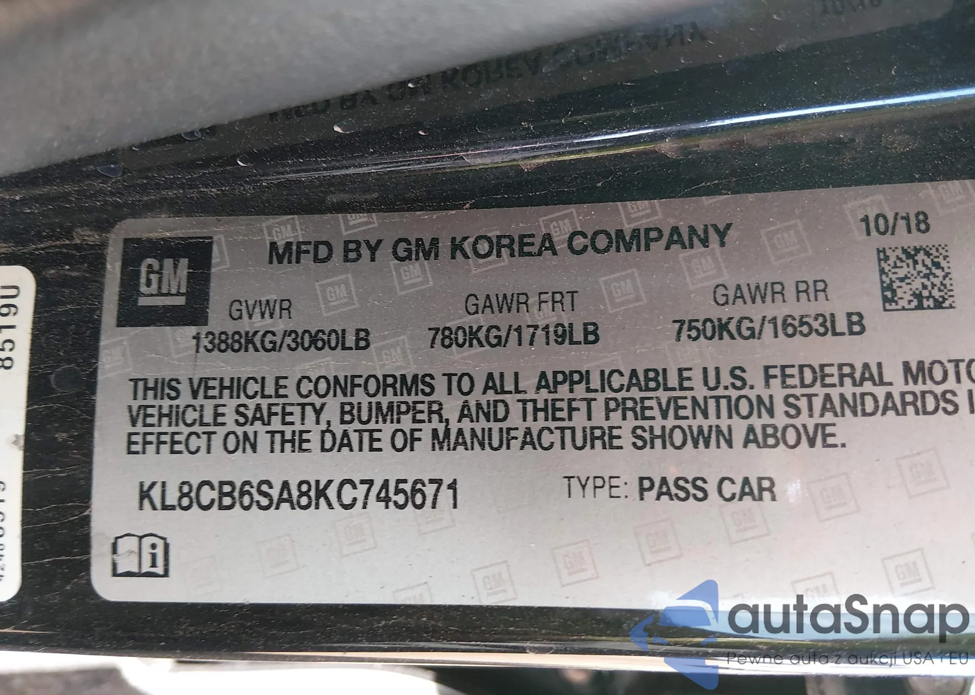 • VIN KL8CB6SA8KC745671