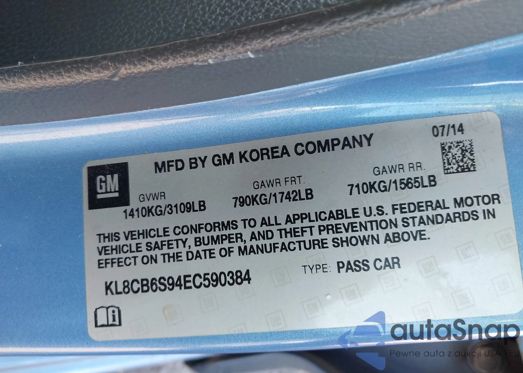 • VIN KL8CB6S94EC590384