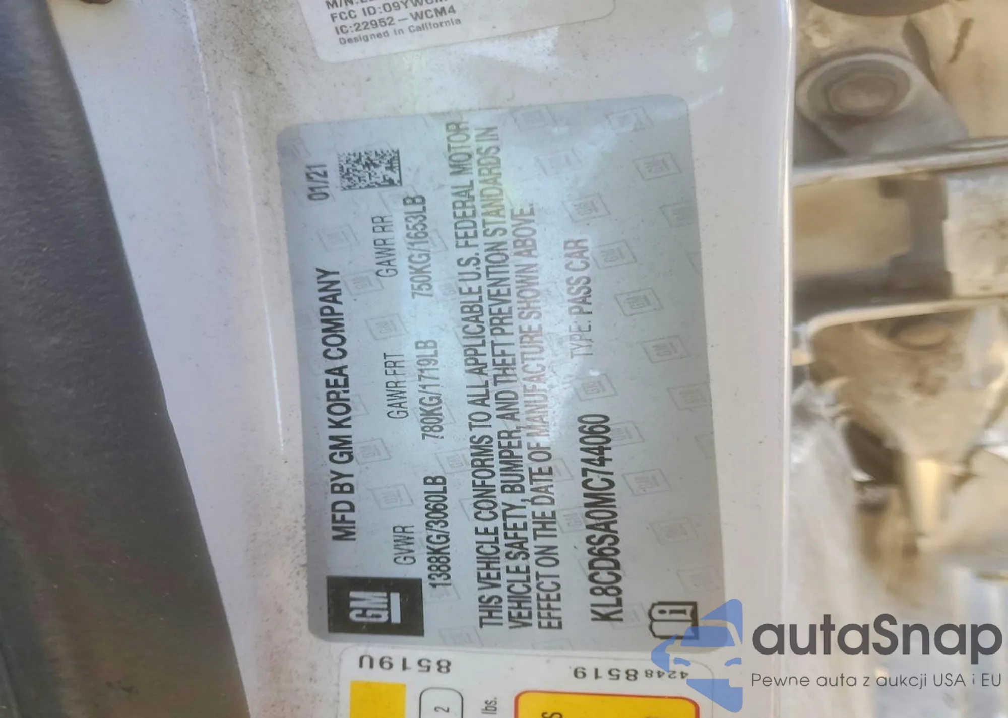 • VIN KL8CD6SA0MC744060
