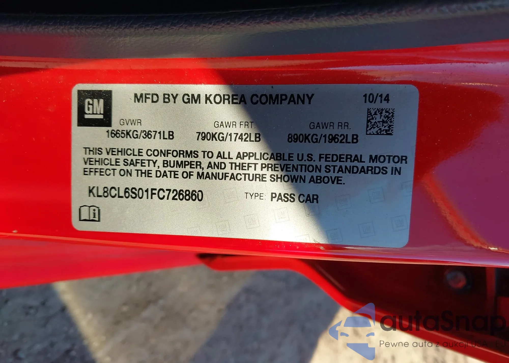 • VIN KL8CL6S01FC726860