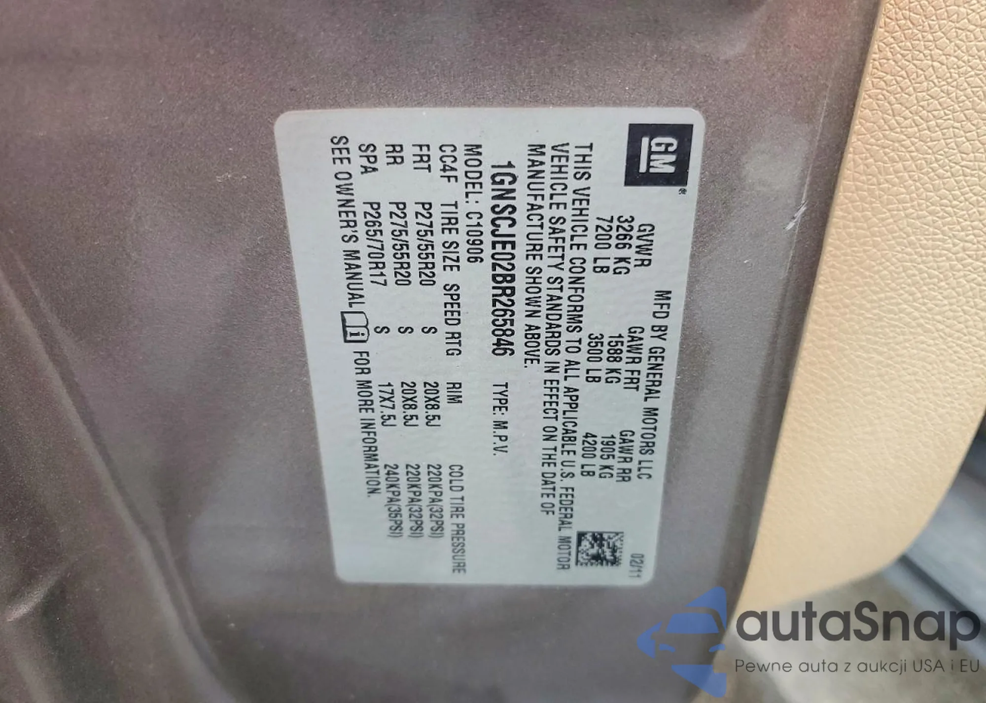LOT: 72553725 VIN: 1GNSCJE02BR265846