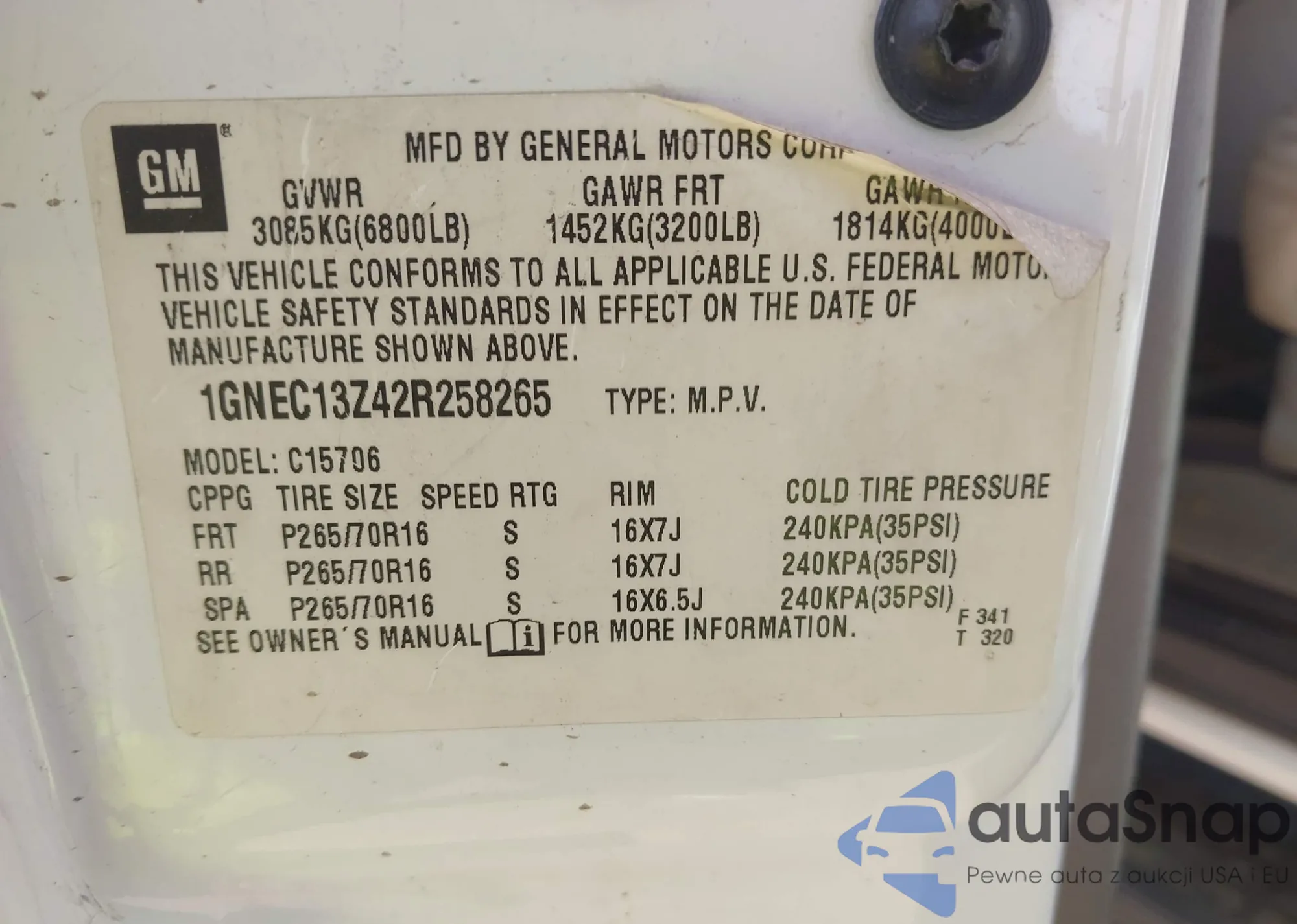 LOT: 44460196 VIN: 1GNEC13Z42R258265