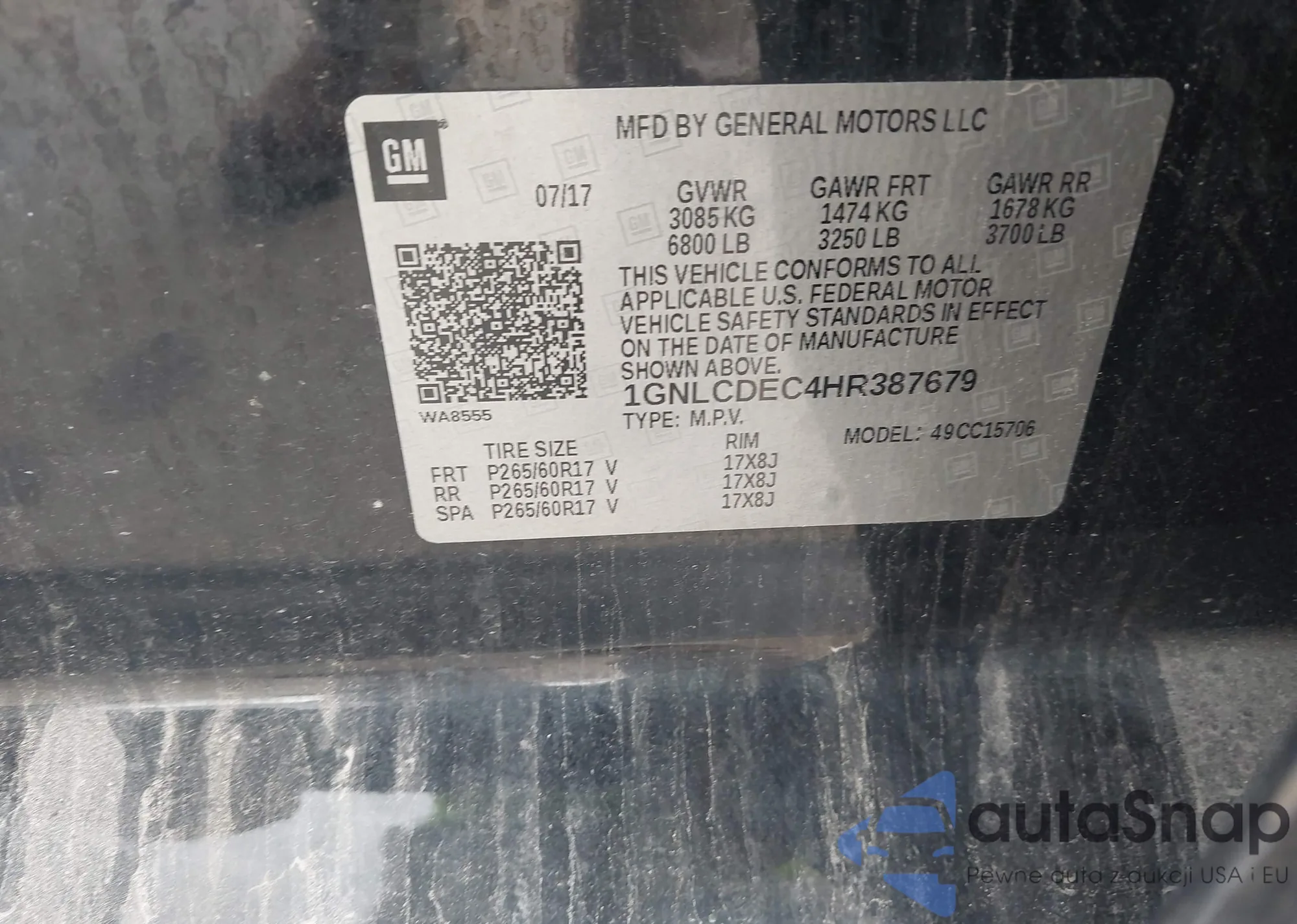 • VIN 1GNLCDEC4HR387679