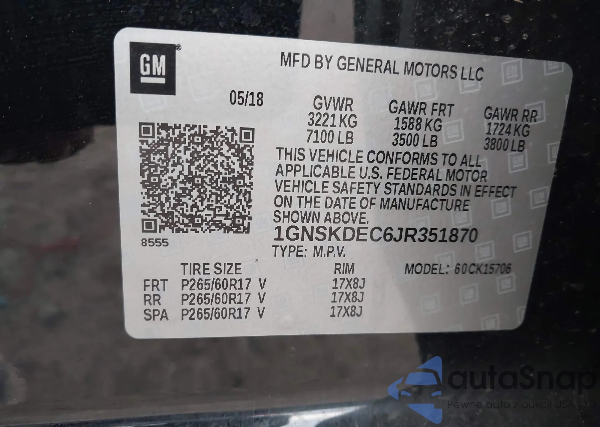 • VIN 1GNSKDEC6JR351870