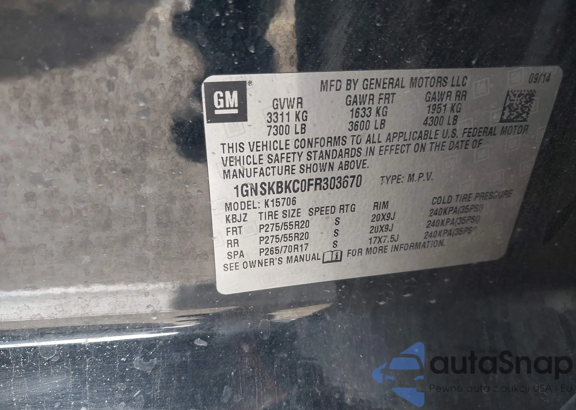 LOT: 44308409 VIN: 1GNSKBKC0FR303670