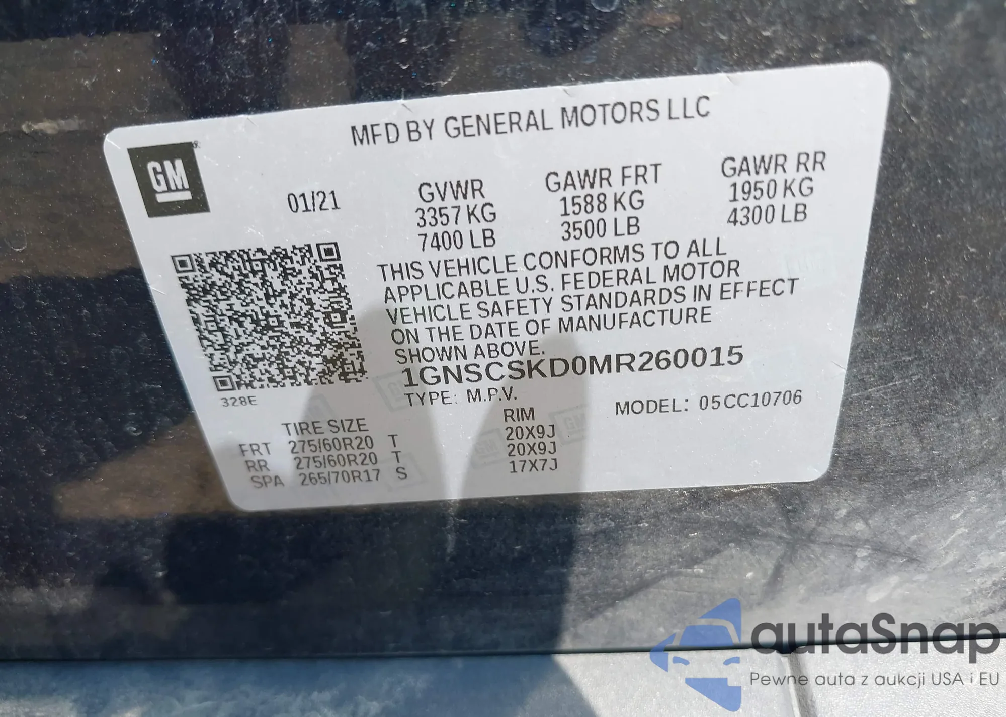 LOT: 43212111 VIN: 1GNSCSKD0MR260015