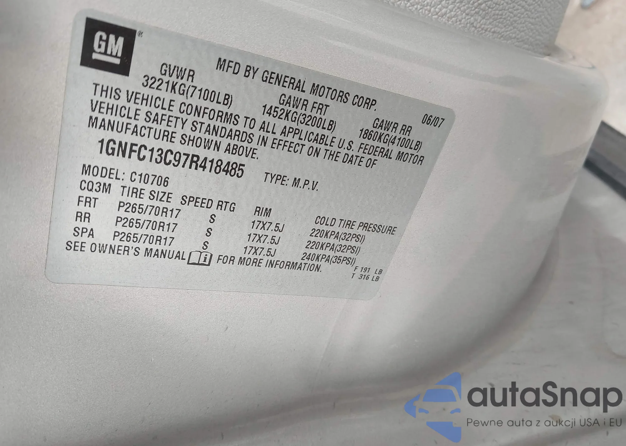 • VIN 1GNFC13C97R418485
