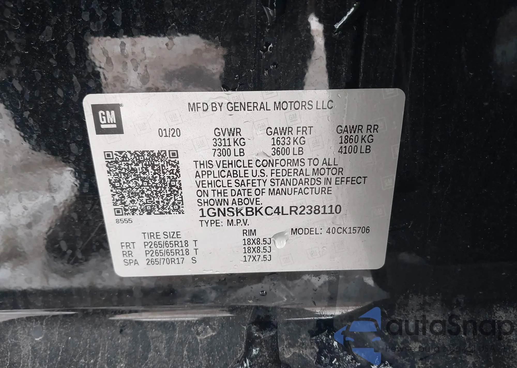 • VIN 1GNSKBKC4LR238110
