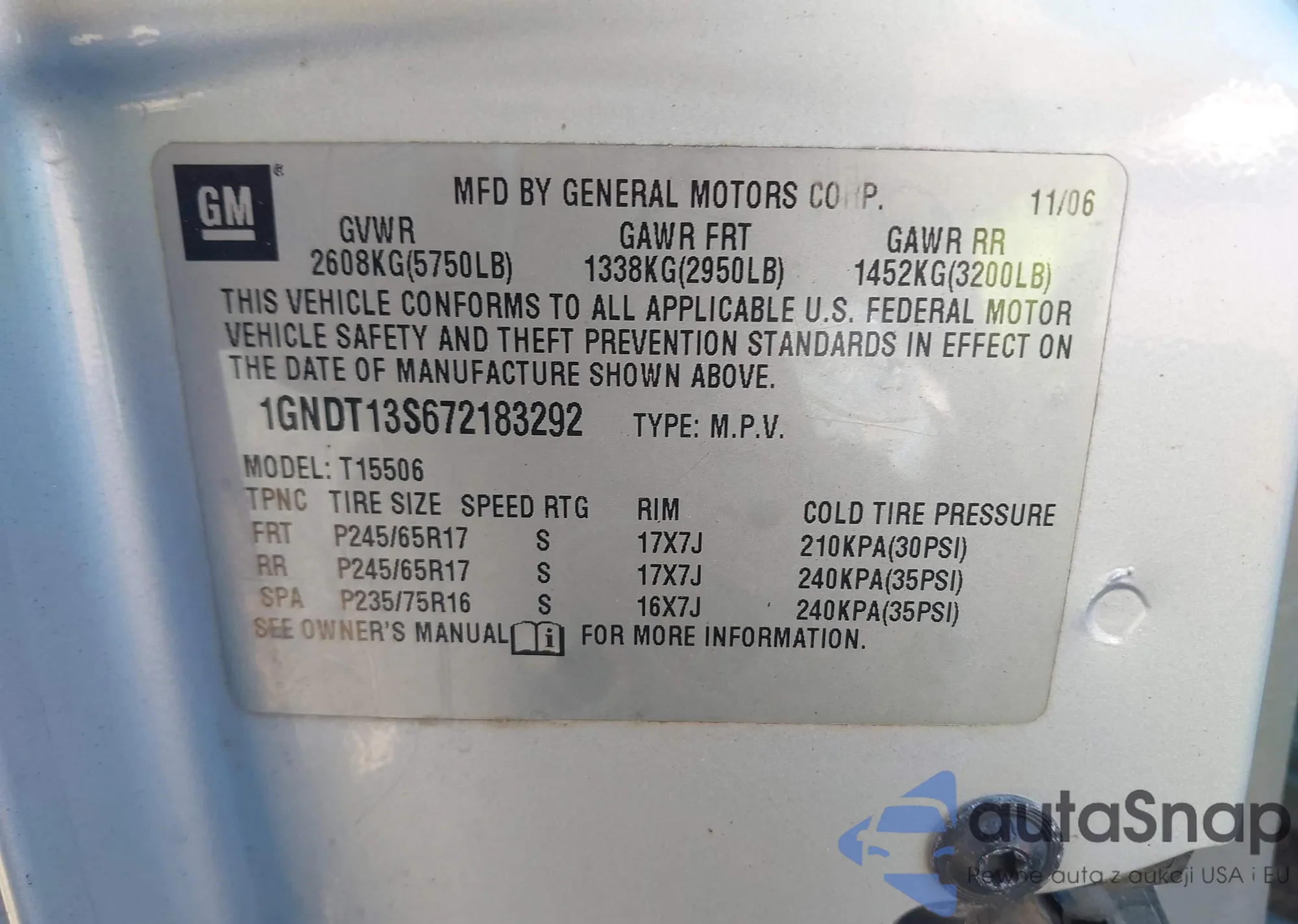 LOT: 44407420 VIN: 1GNDT13S672183292
