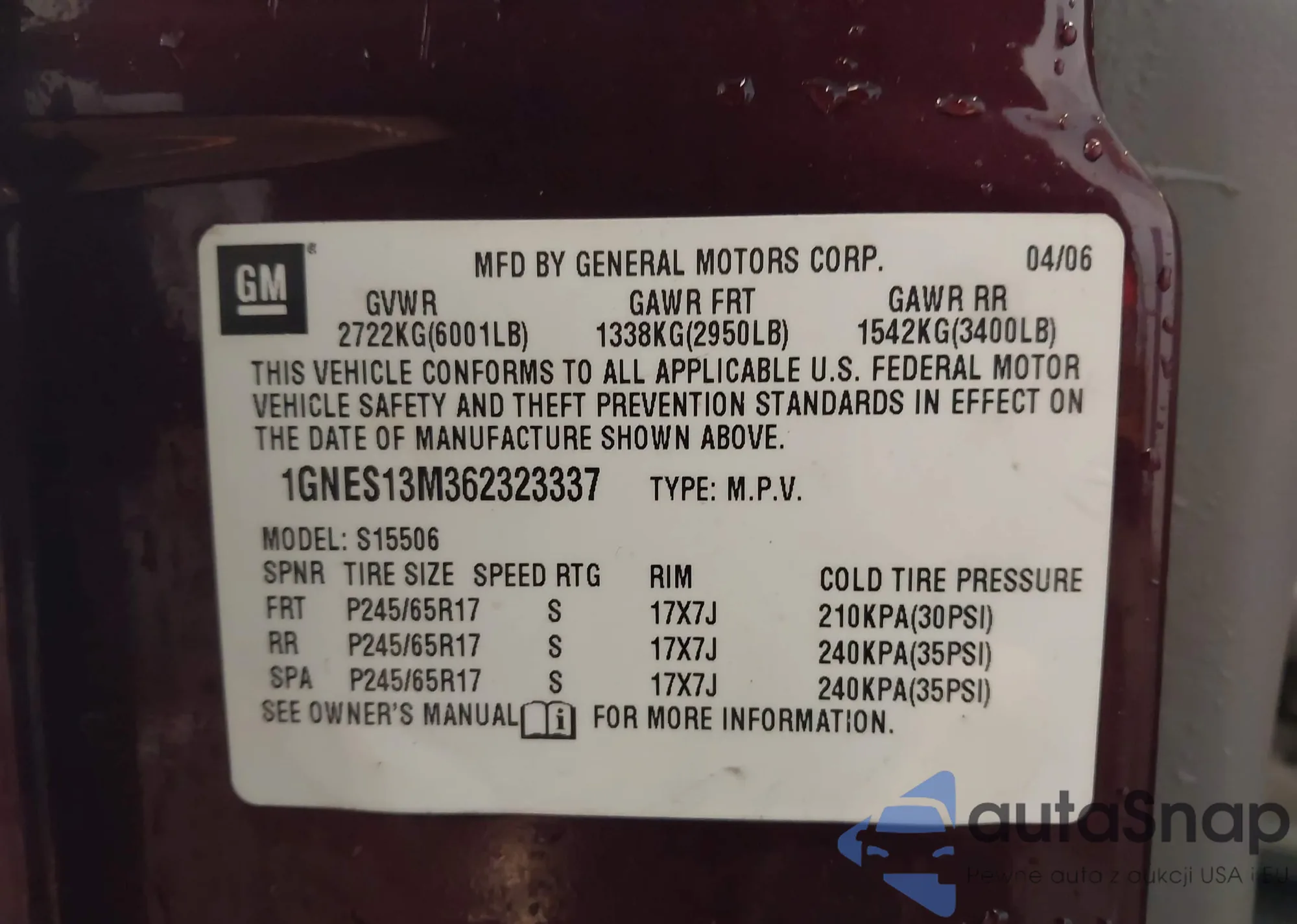 • VIN 1GNES13M362323337