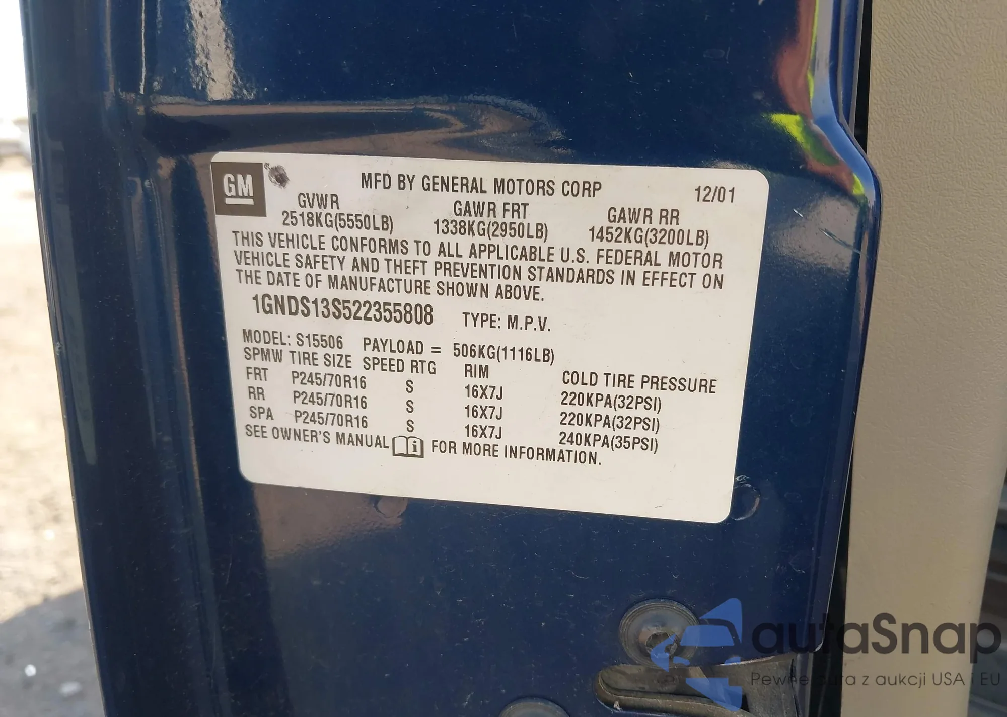 LOT: 44469097 VIN: 1GNDS13S522355808