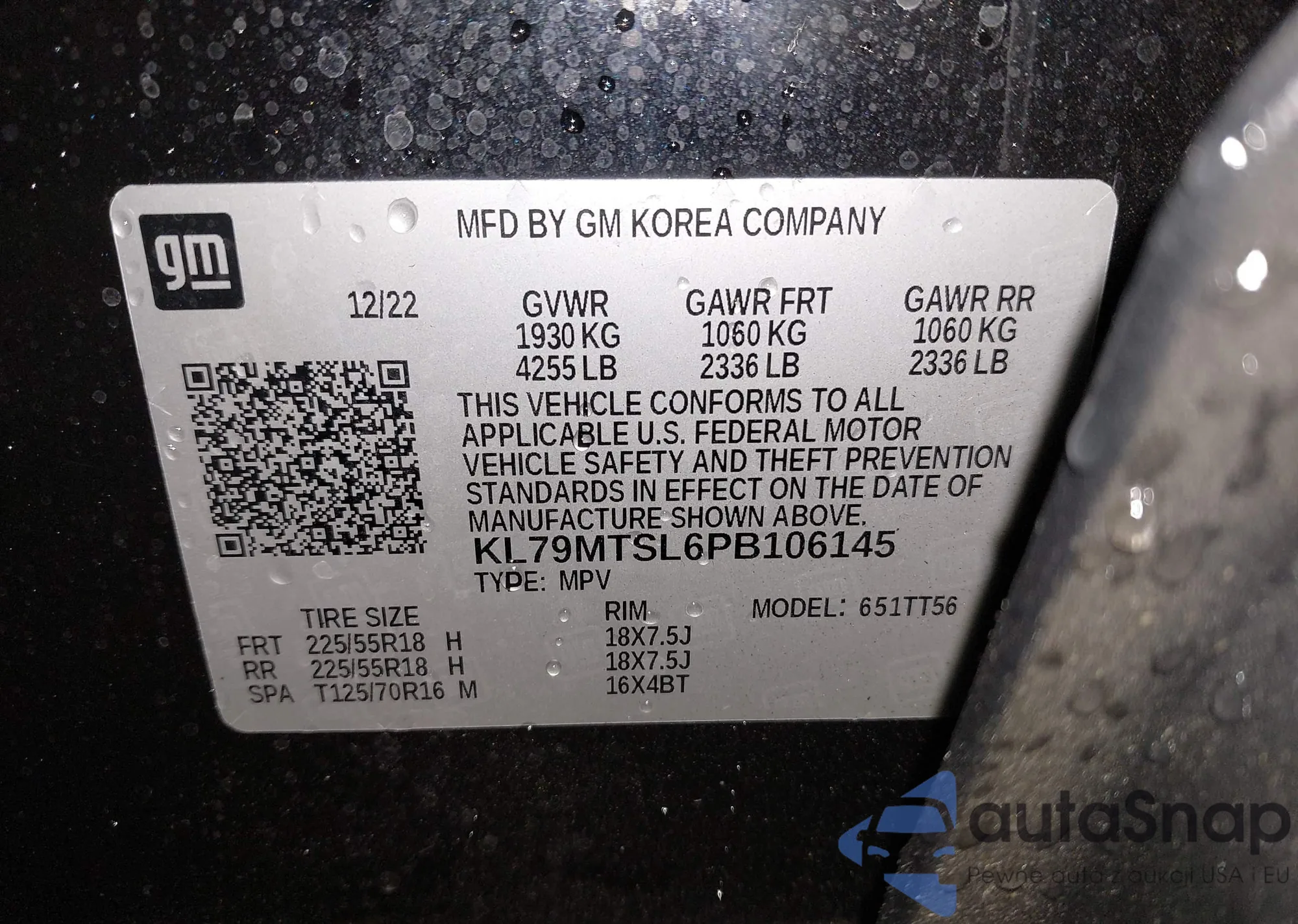 • VIN KL79MTSL6PB106145