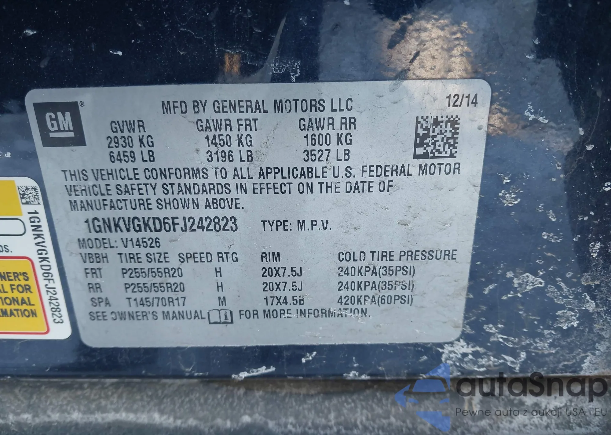 LOT: 44205881 VIN: 1GNKVGKD6FJ242823
