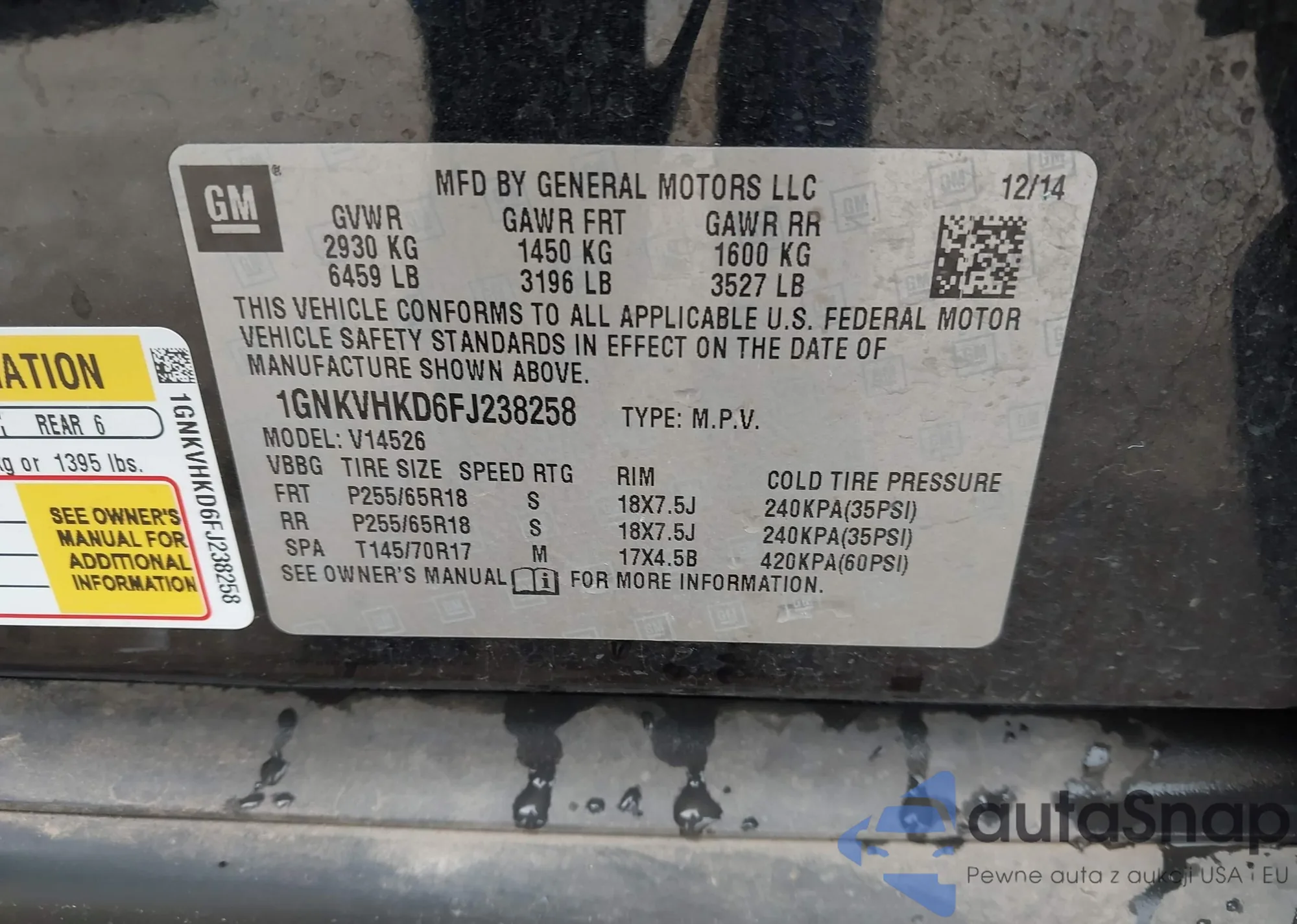 • VIN 1GNKVHKD6FJ238258