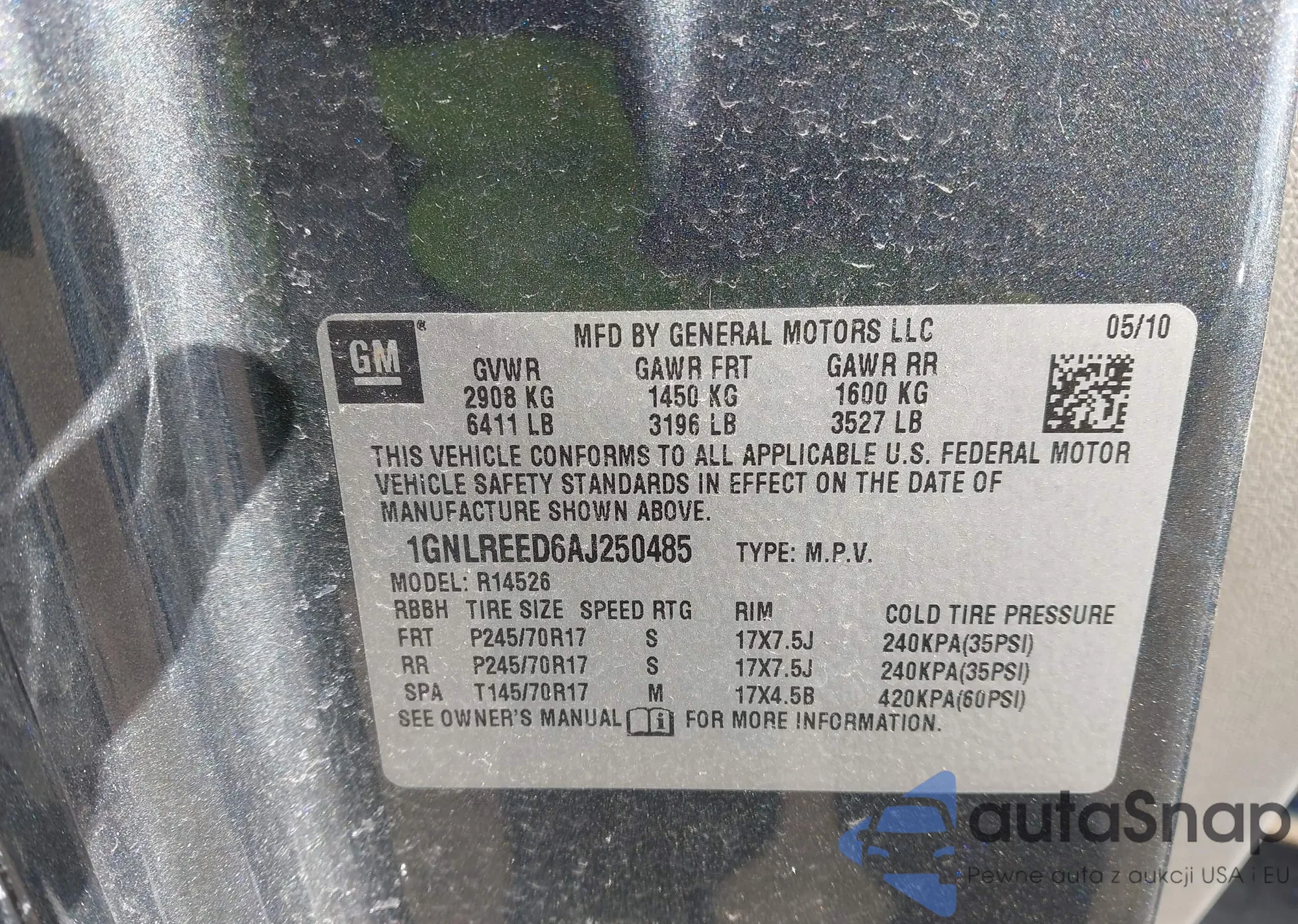 • VIN 1GNLREED6AJ250485