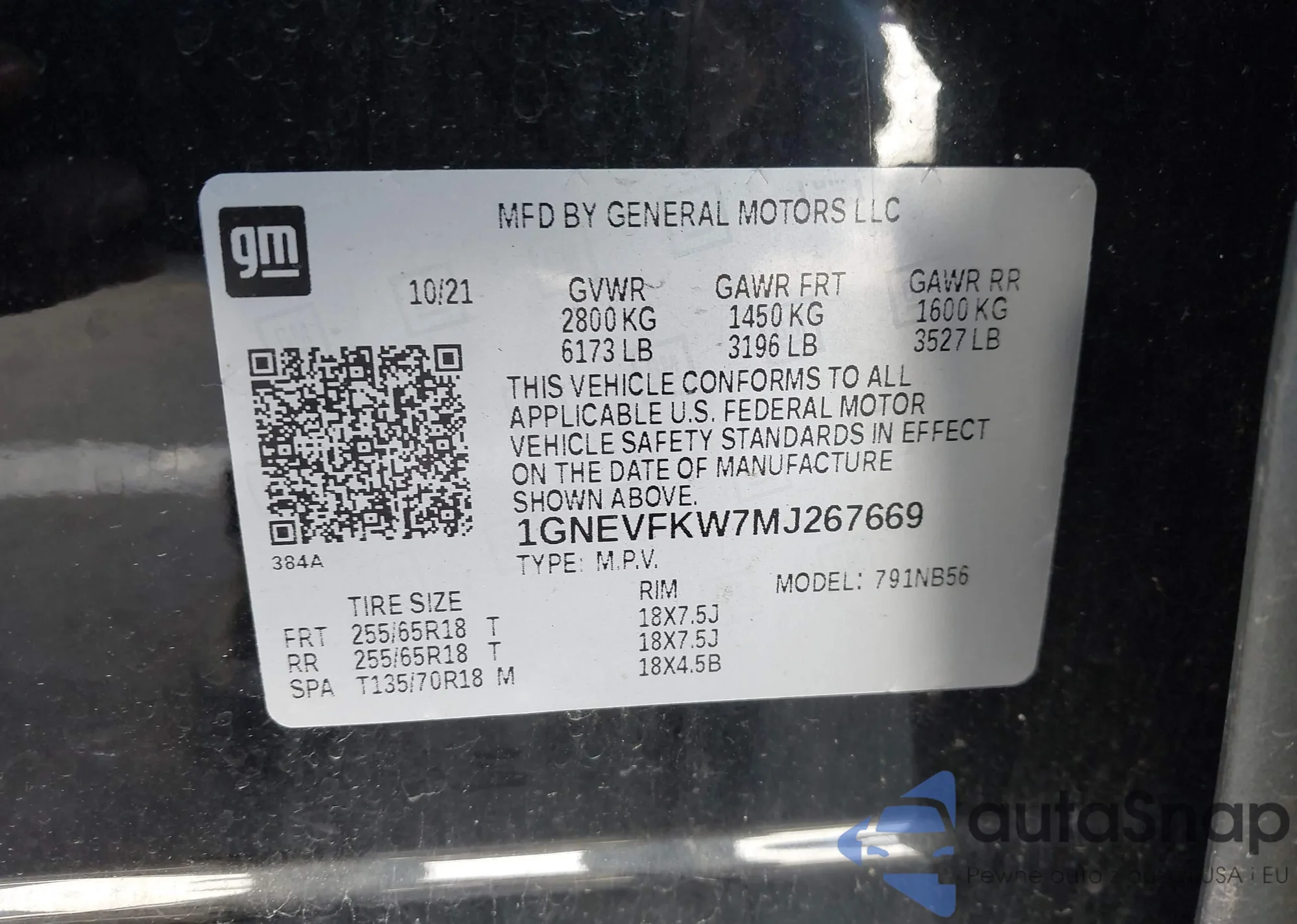 • VIN 1GNEVFKW7MJ267669