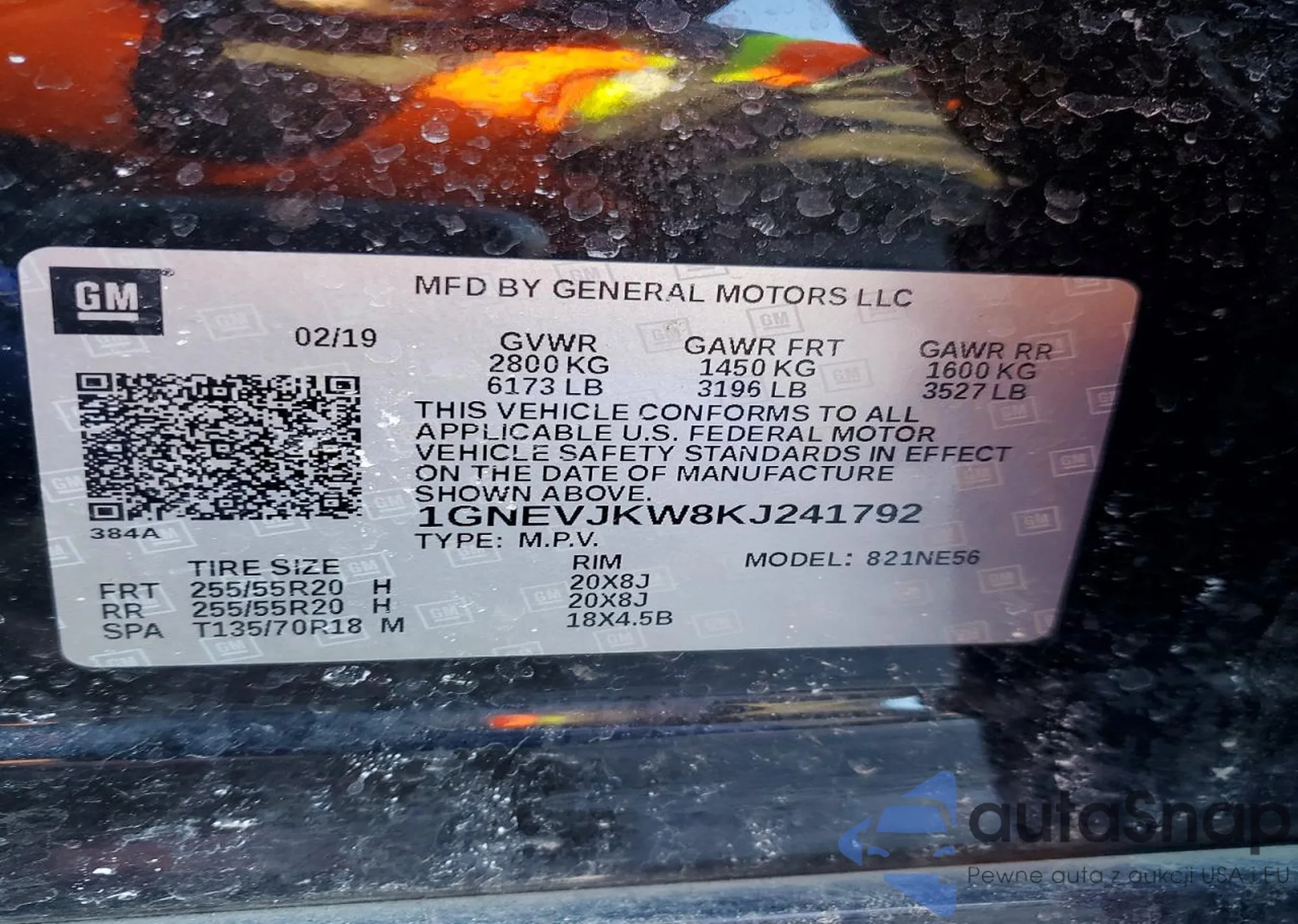 LOT: 76952555 VIN: 1GNEVJKW8KJ241792