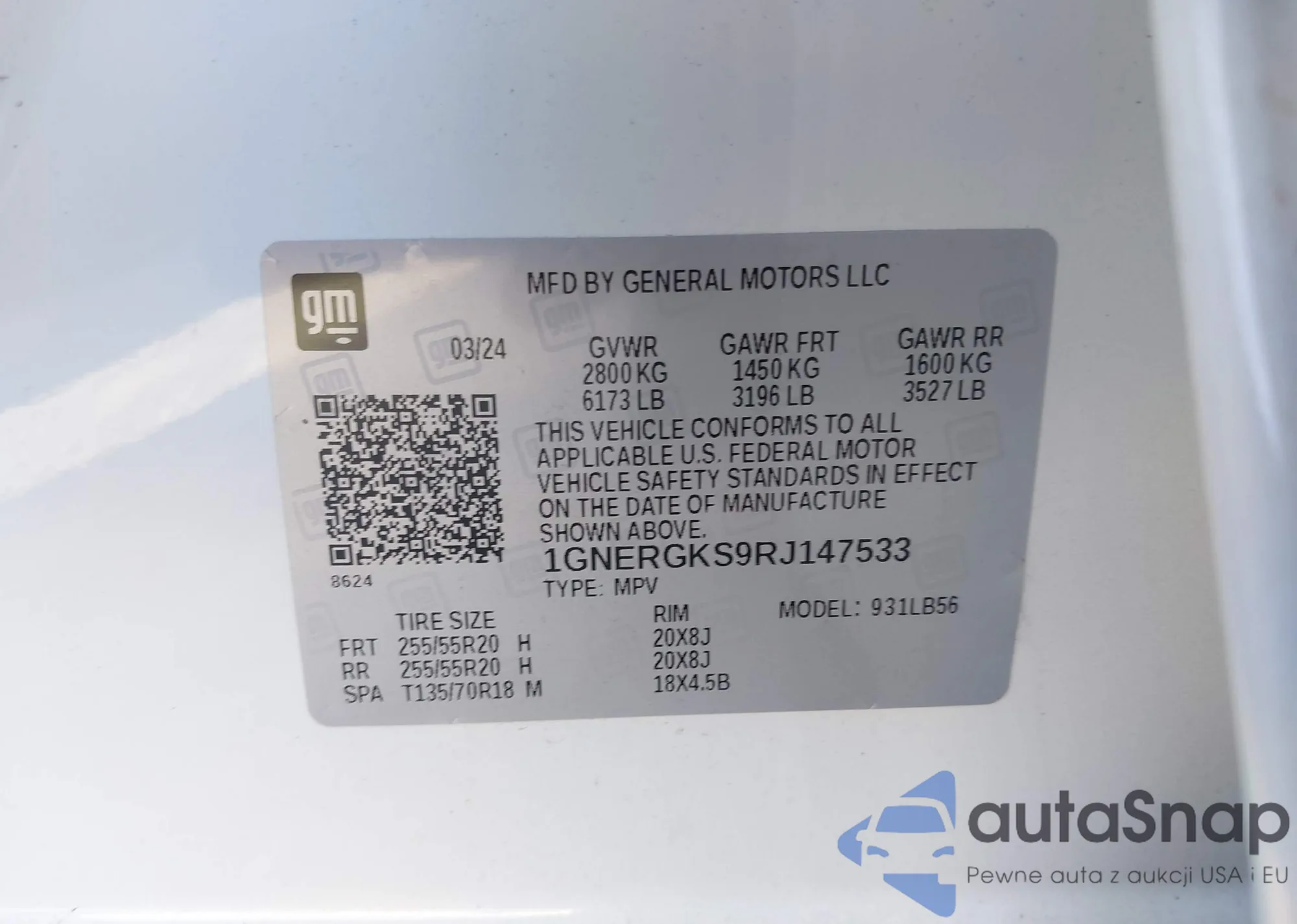 LOT: 44128043 VIN: 1GNERGKS9RJ147533