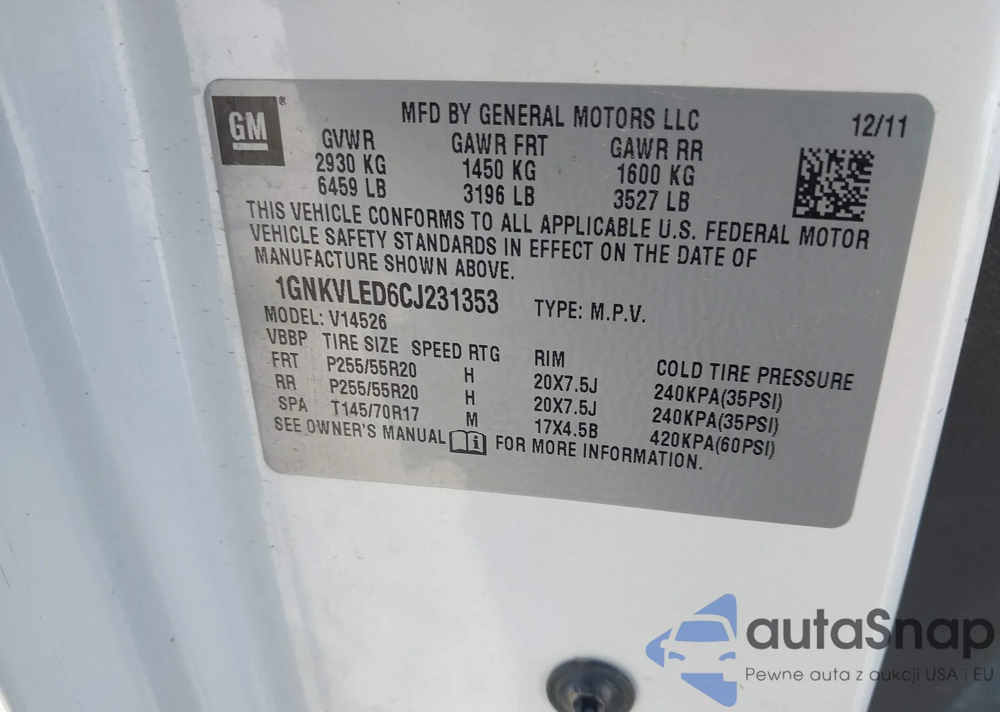 • VIN 1GNKVLED6CJ231353