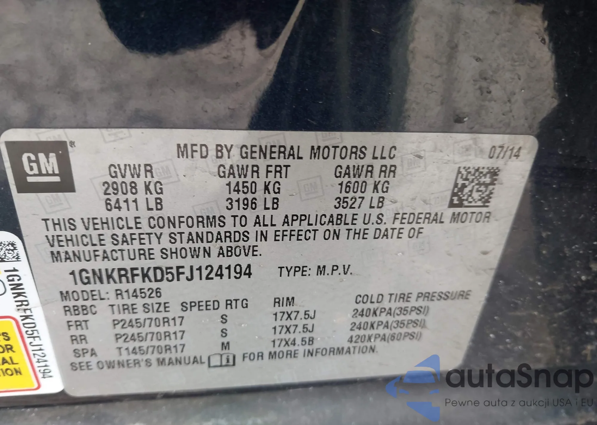 LOT: 44378156 VIN: 1GNKRFKD5FJ124194