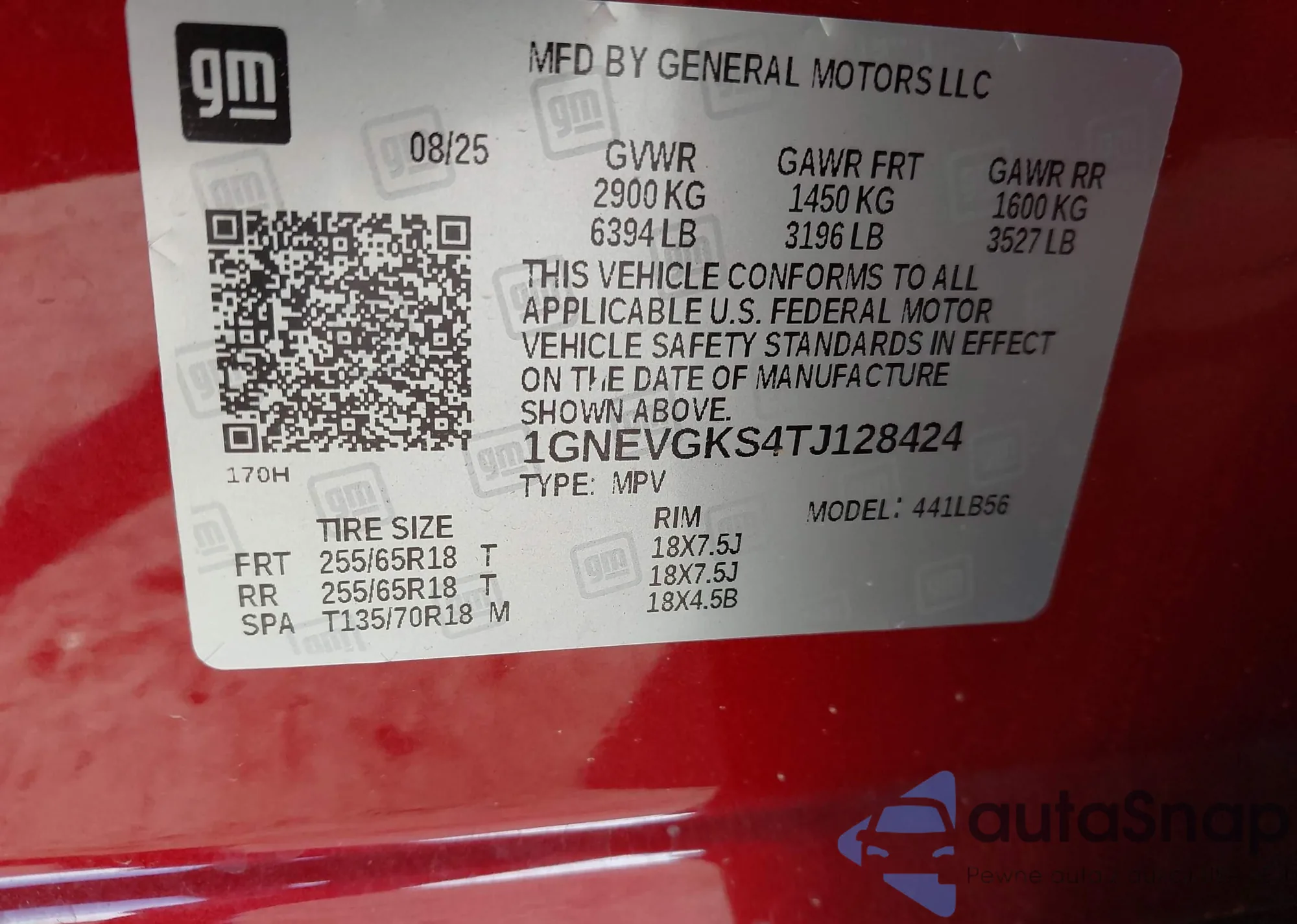 • VIN 1GNEVGKS4TJ128424