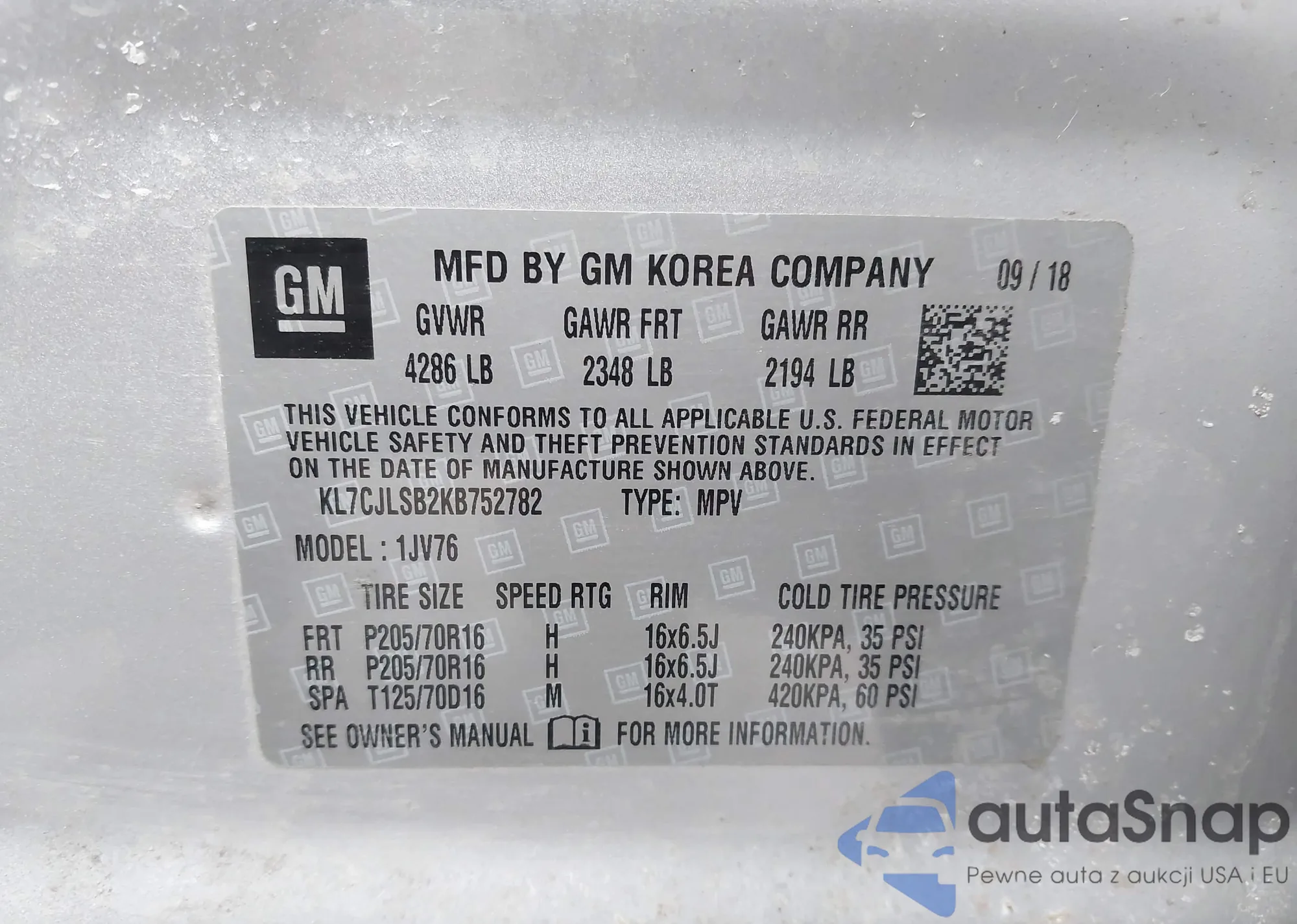 LOT: 44138543 VIN: KL7CJLSB2KB752782