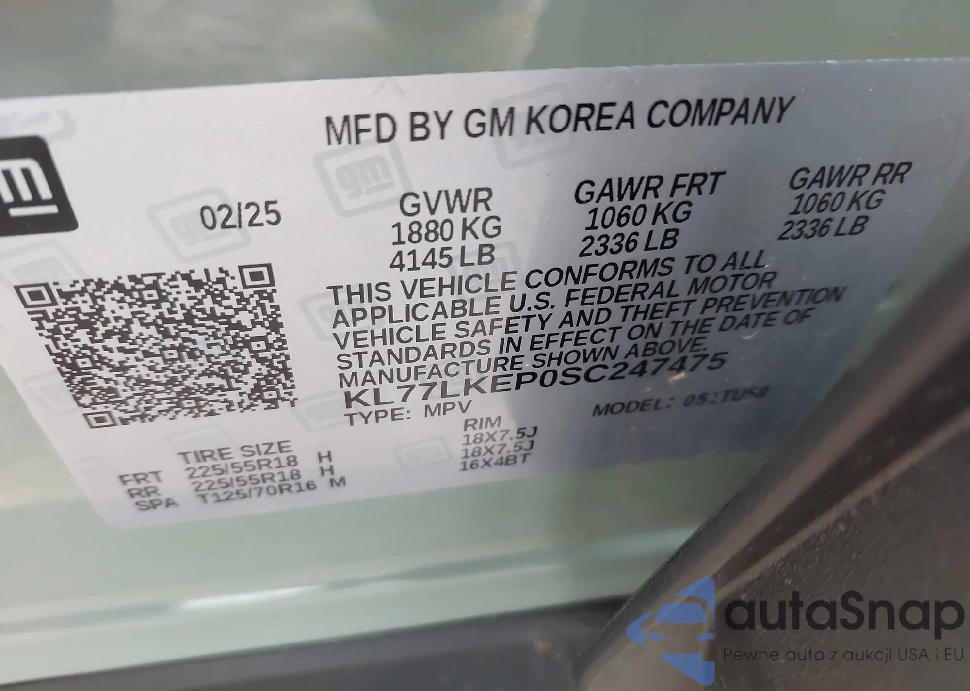 • VIN KL77LKEP0SC247475