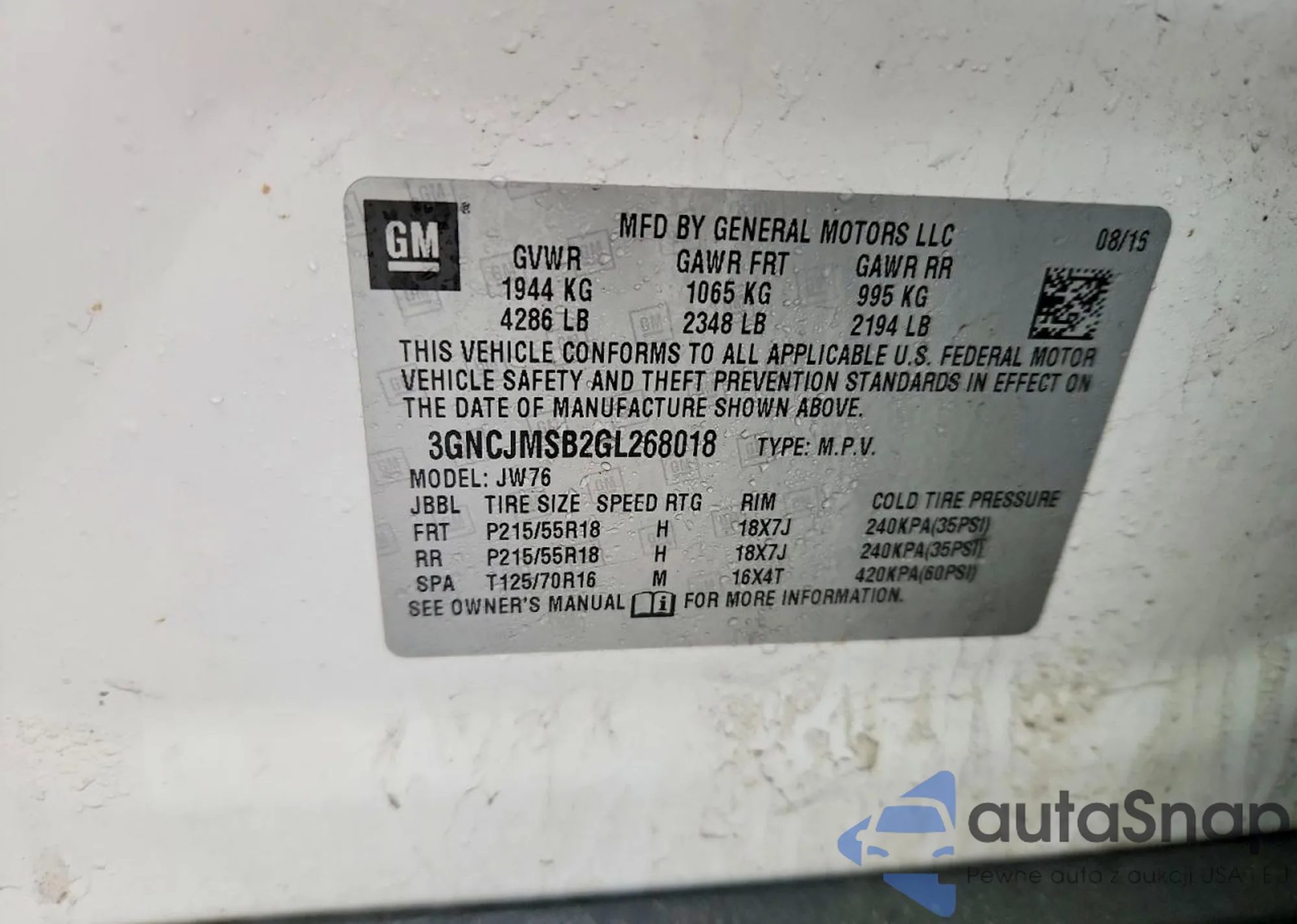 Kup Chevrolet Trax I z USA