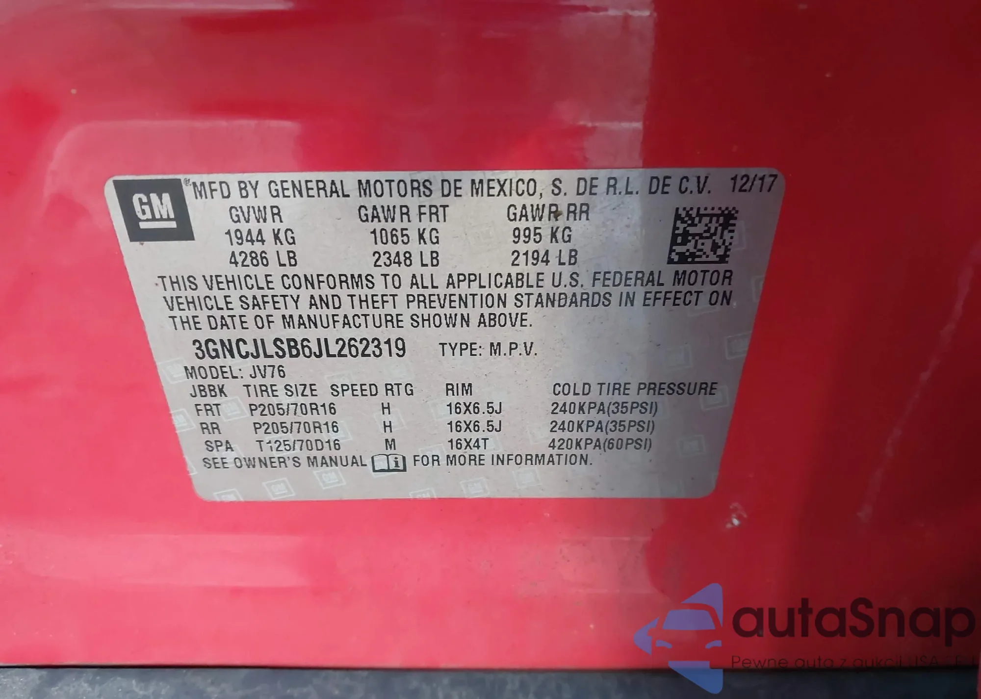 Kup Chevrolet Trax I z USA