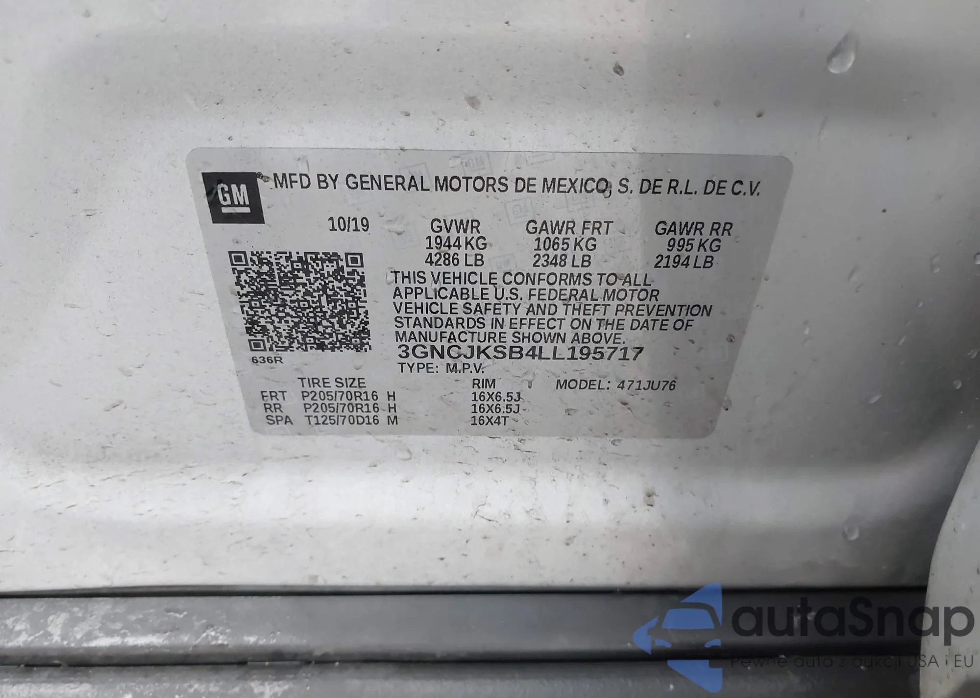 Kup Chevrolet Trax I z USA