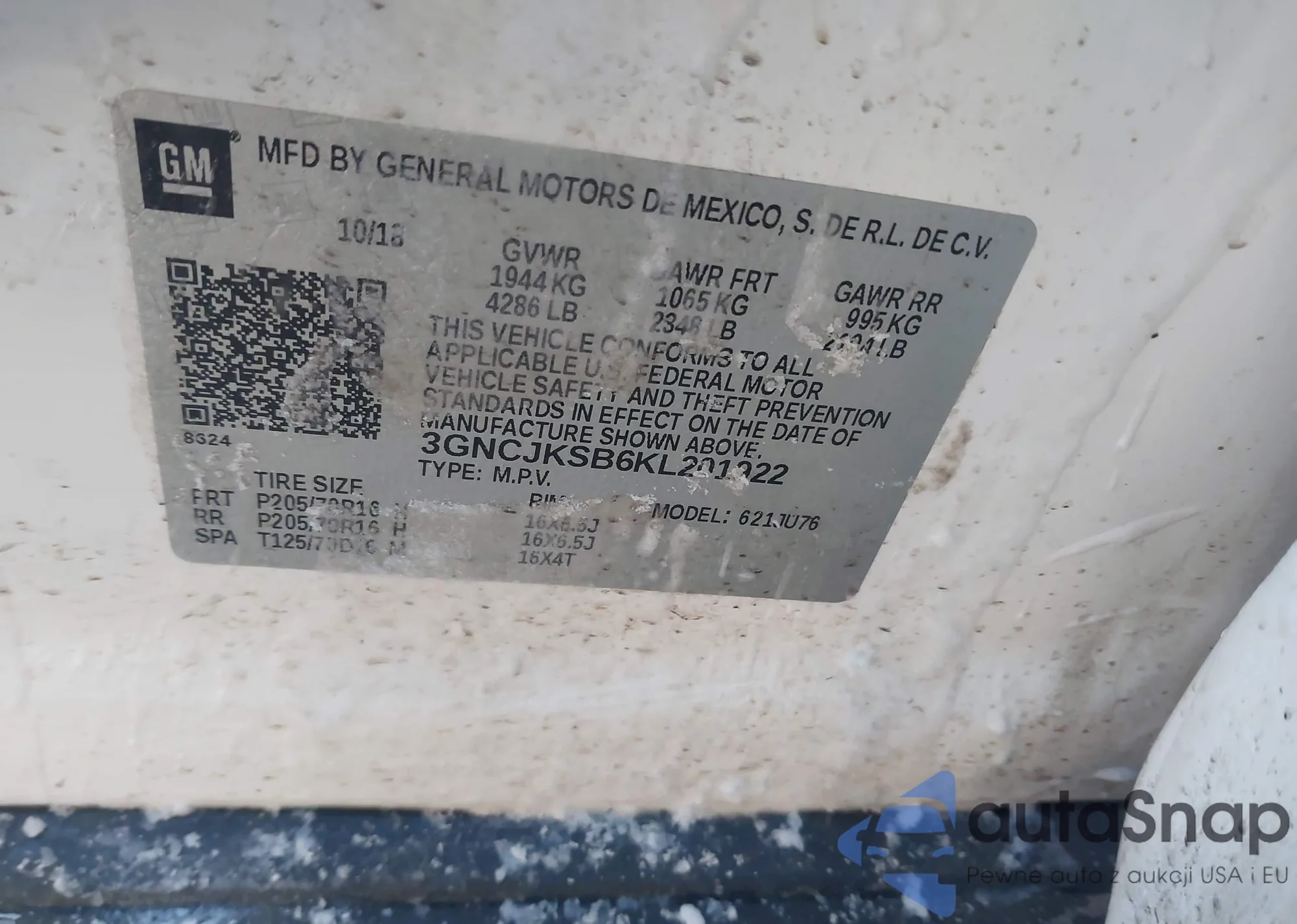 • VIN 3GNCJKSB6KL201922