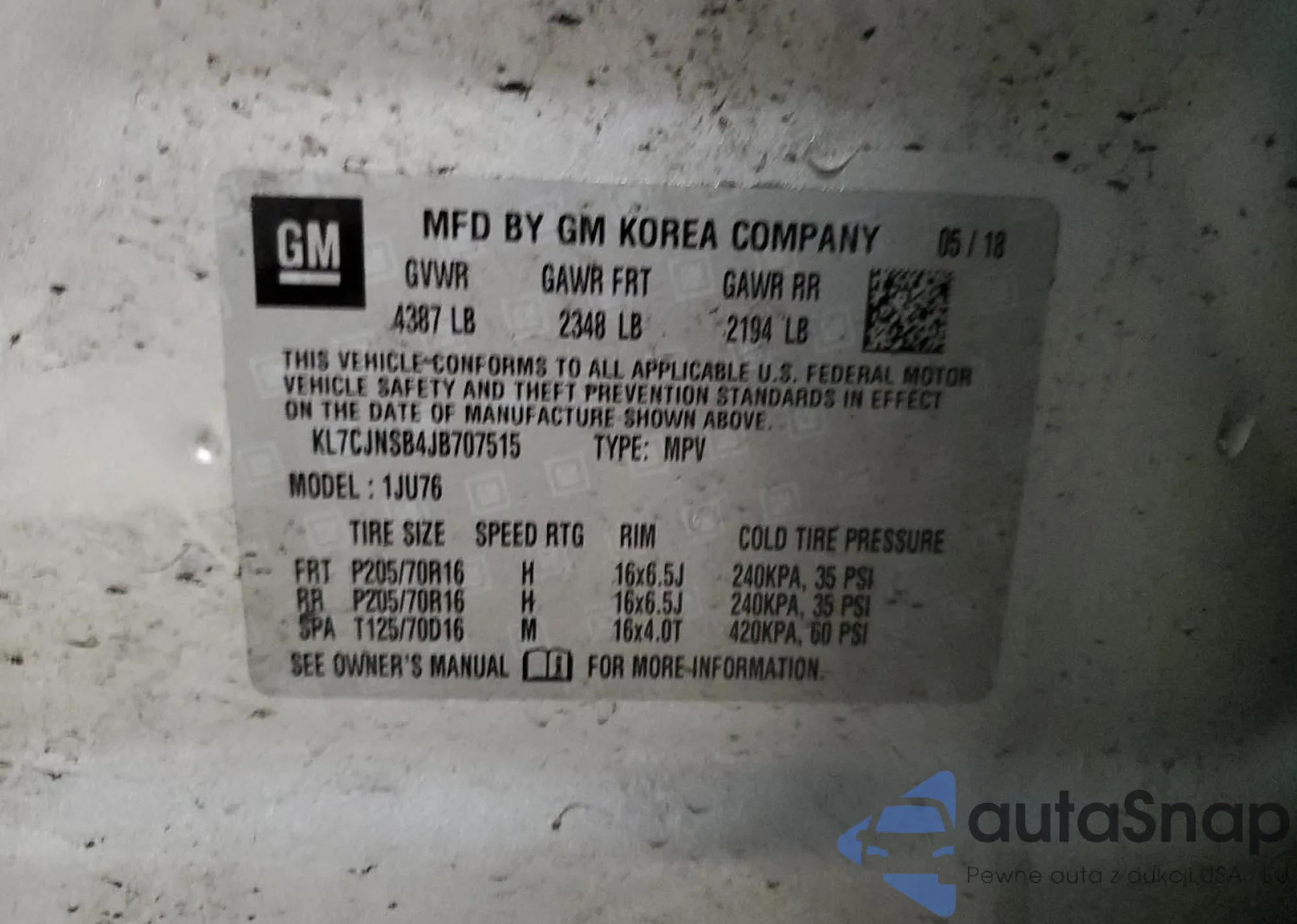 • VIN KL7CJNSB4JB707515
