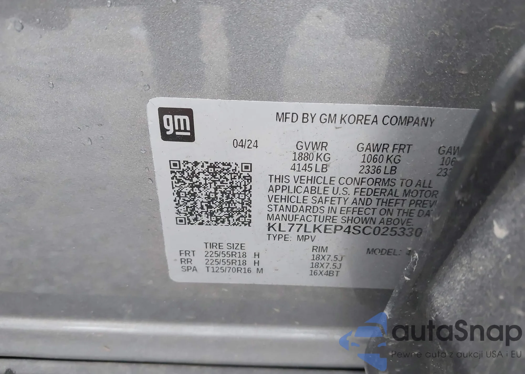 • VIN KL77LKEP4SC025330