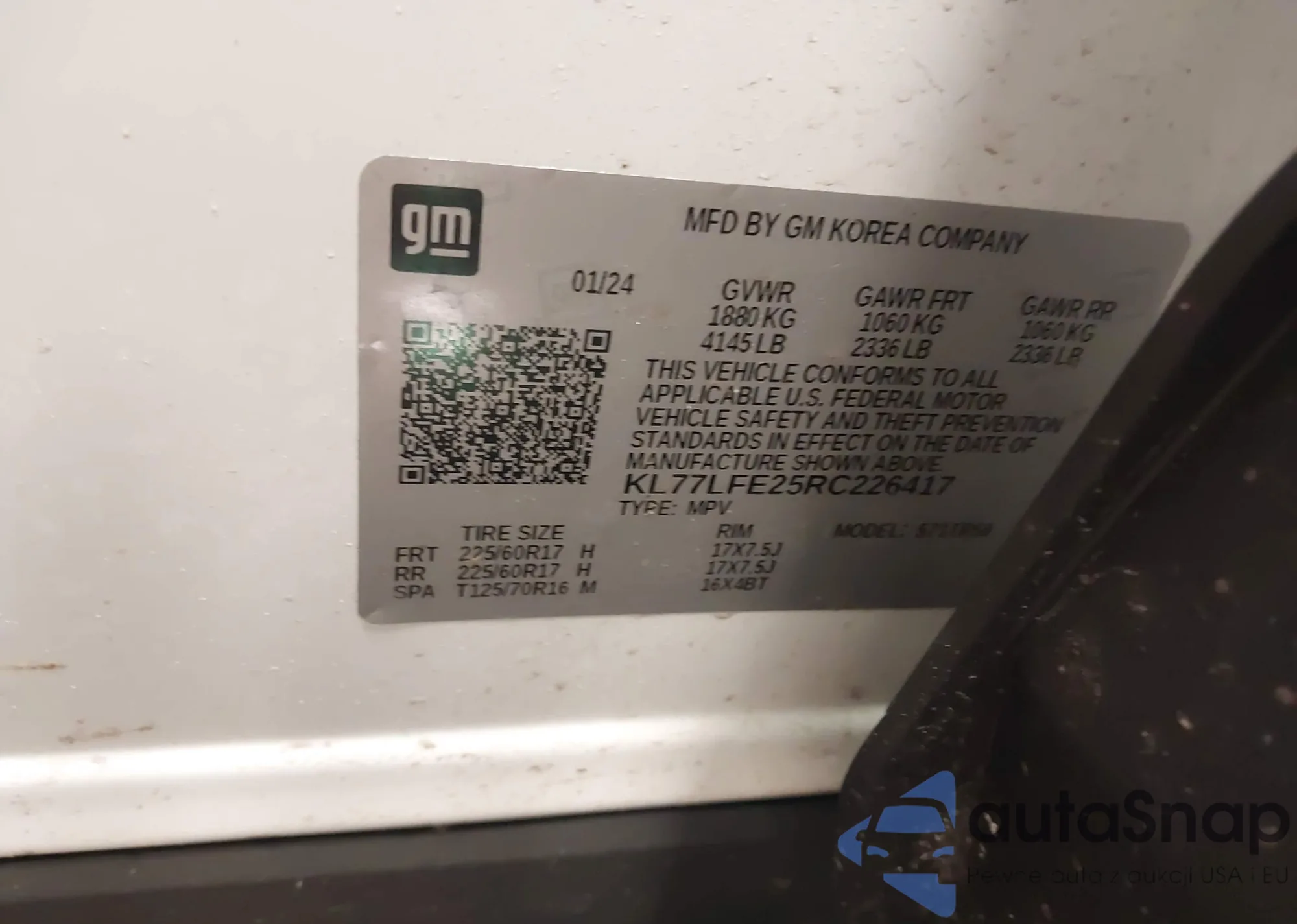 • VIN KL77LFE25RC226417