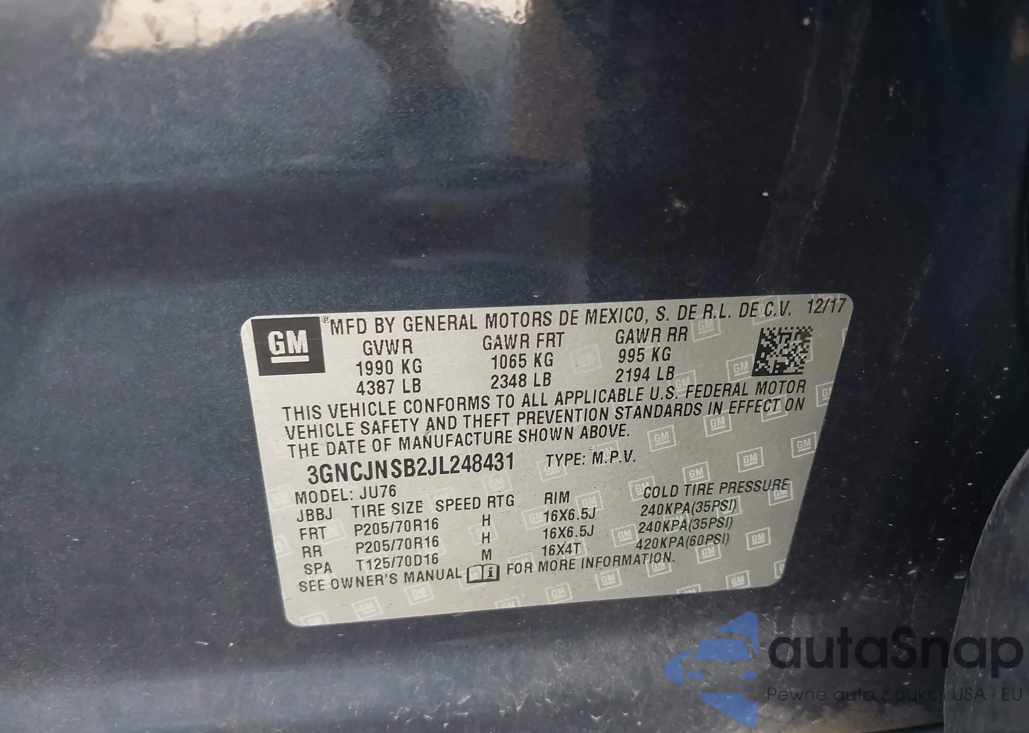 • VIN 3GNCJNSB2JL248431