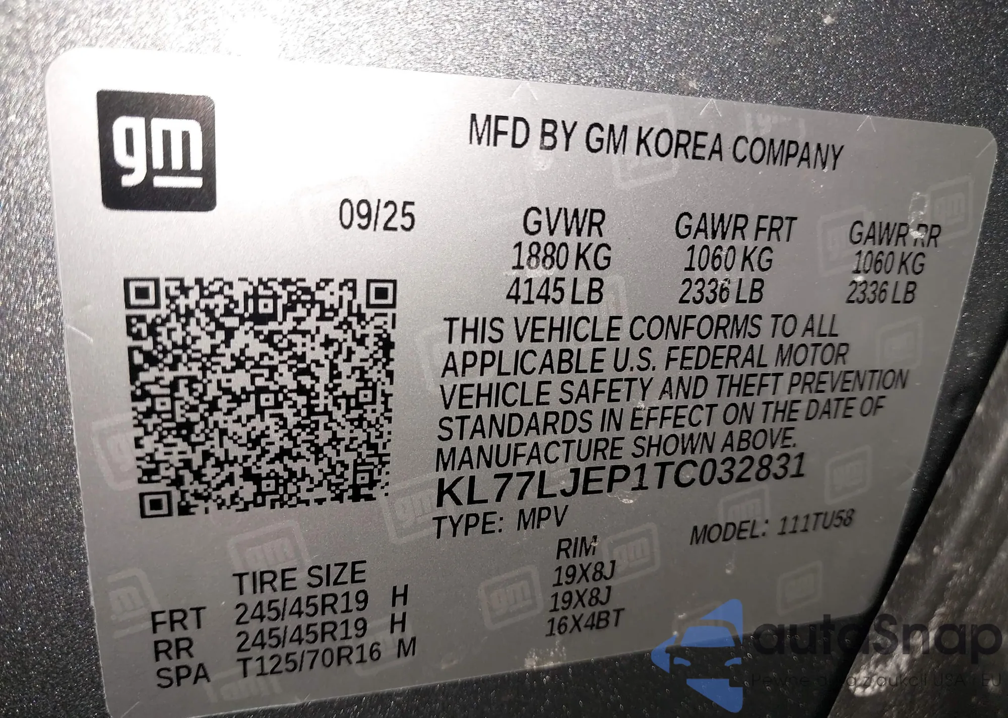 • VIN KL77LJEP1TC032831