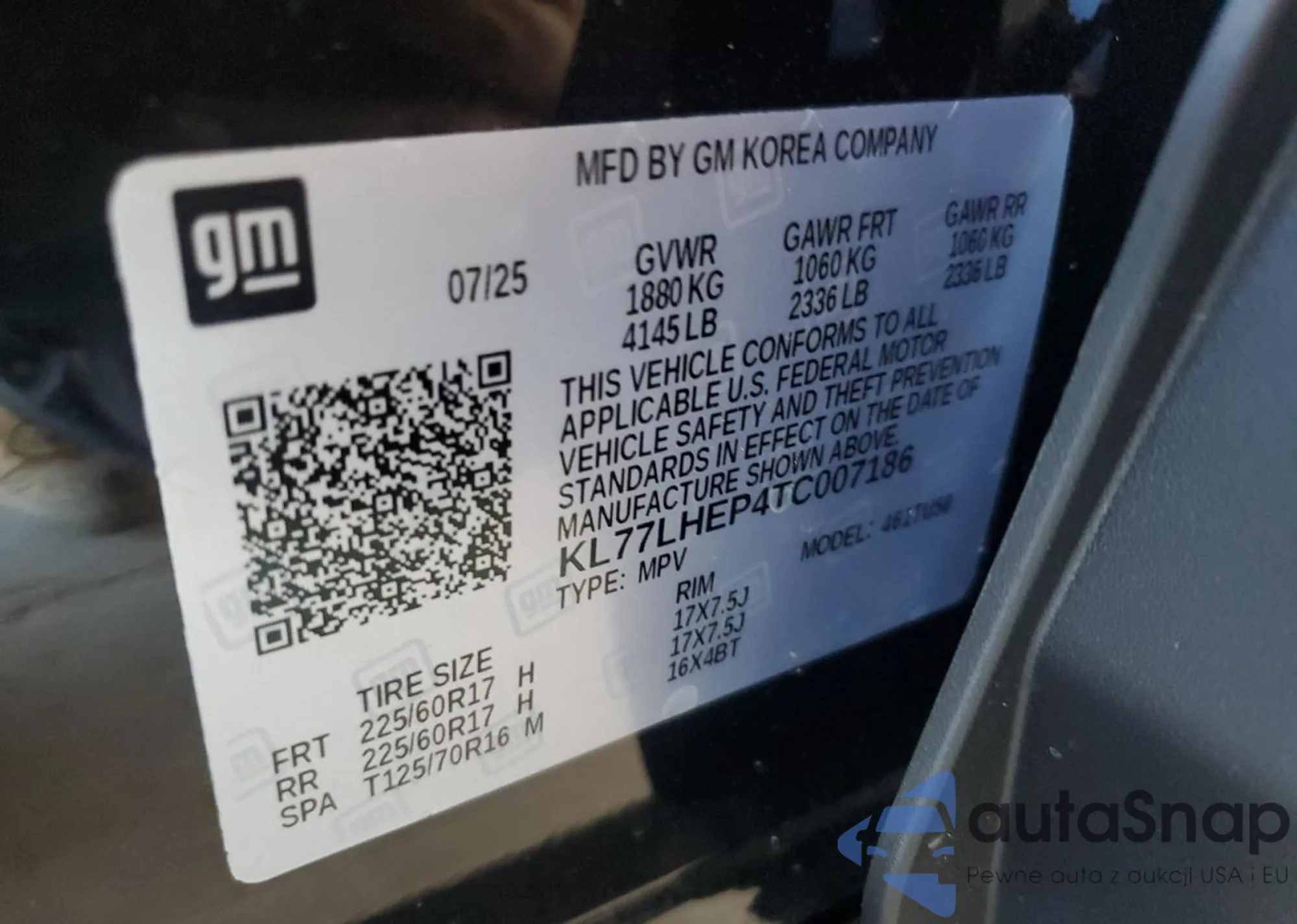 • VIN KL77LHEP4TC007186