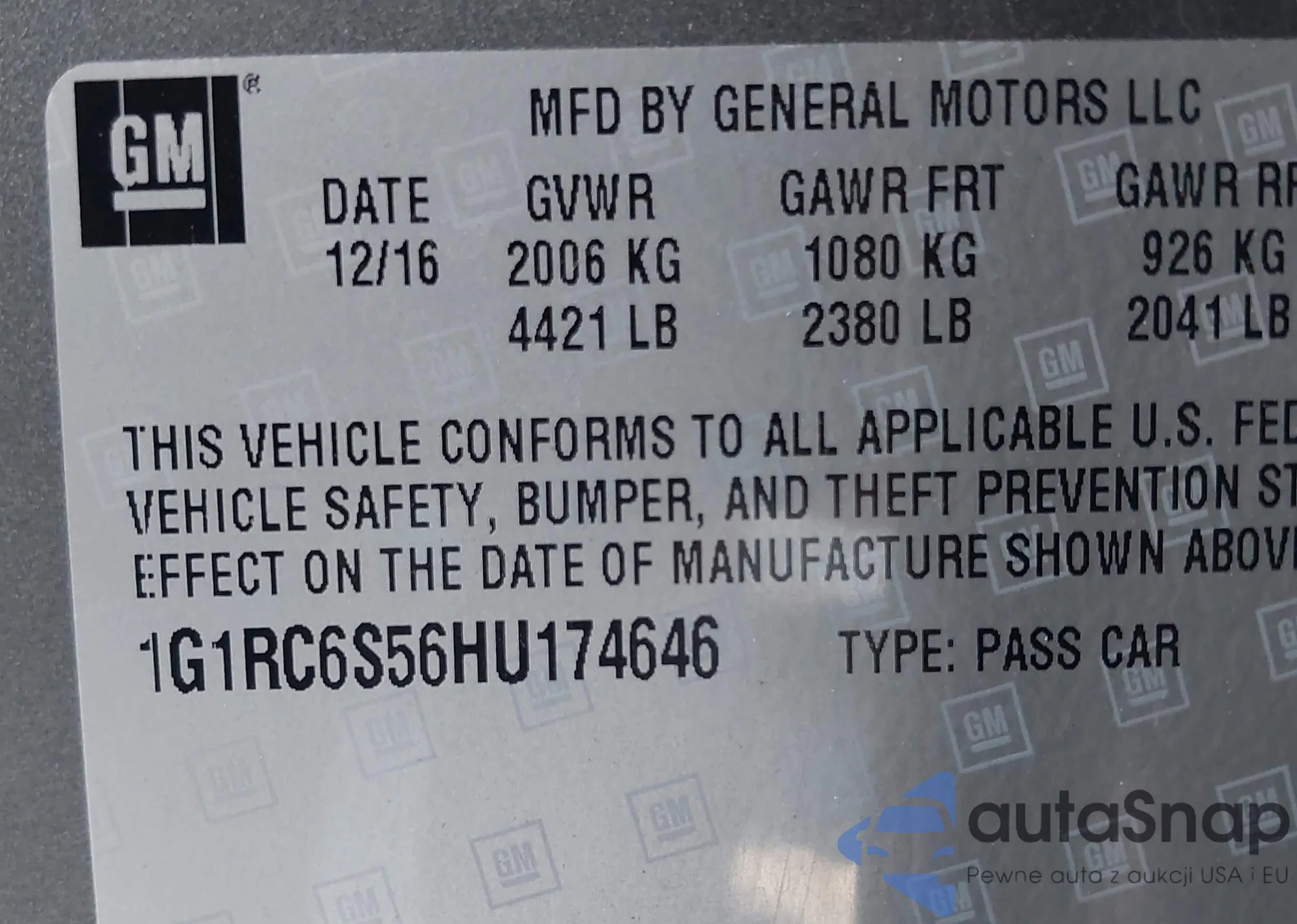 • VIN 1G1RC6S56HU174646