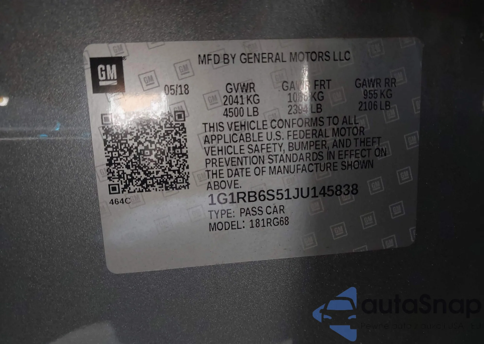 • VIN 1G1RB6S51JU145838