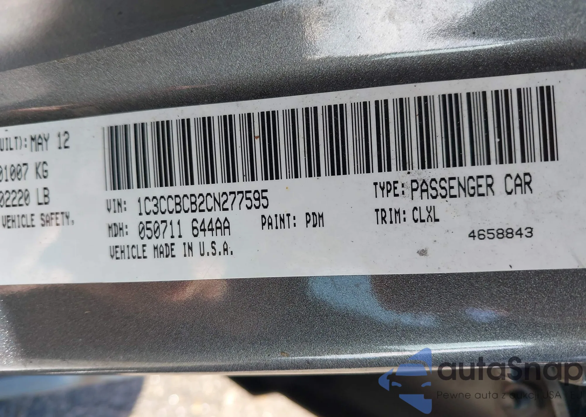 LOT: 44324727 VIN: 1C3CCBCB2CN277595