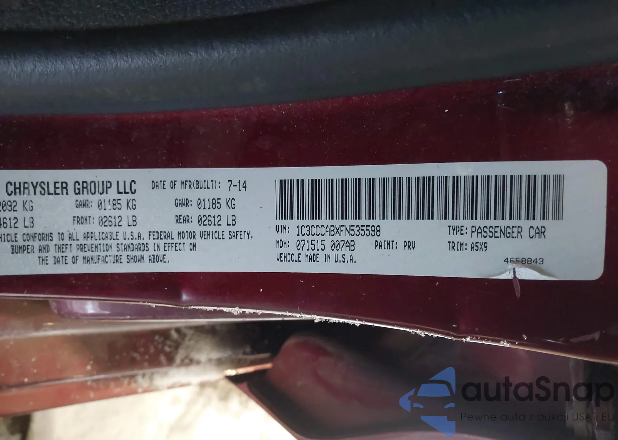 LOT: 44270157 VIN: 1C3CCCABXFN535598