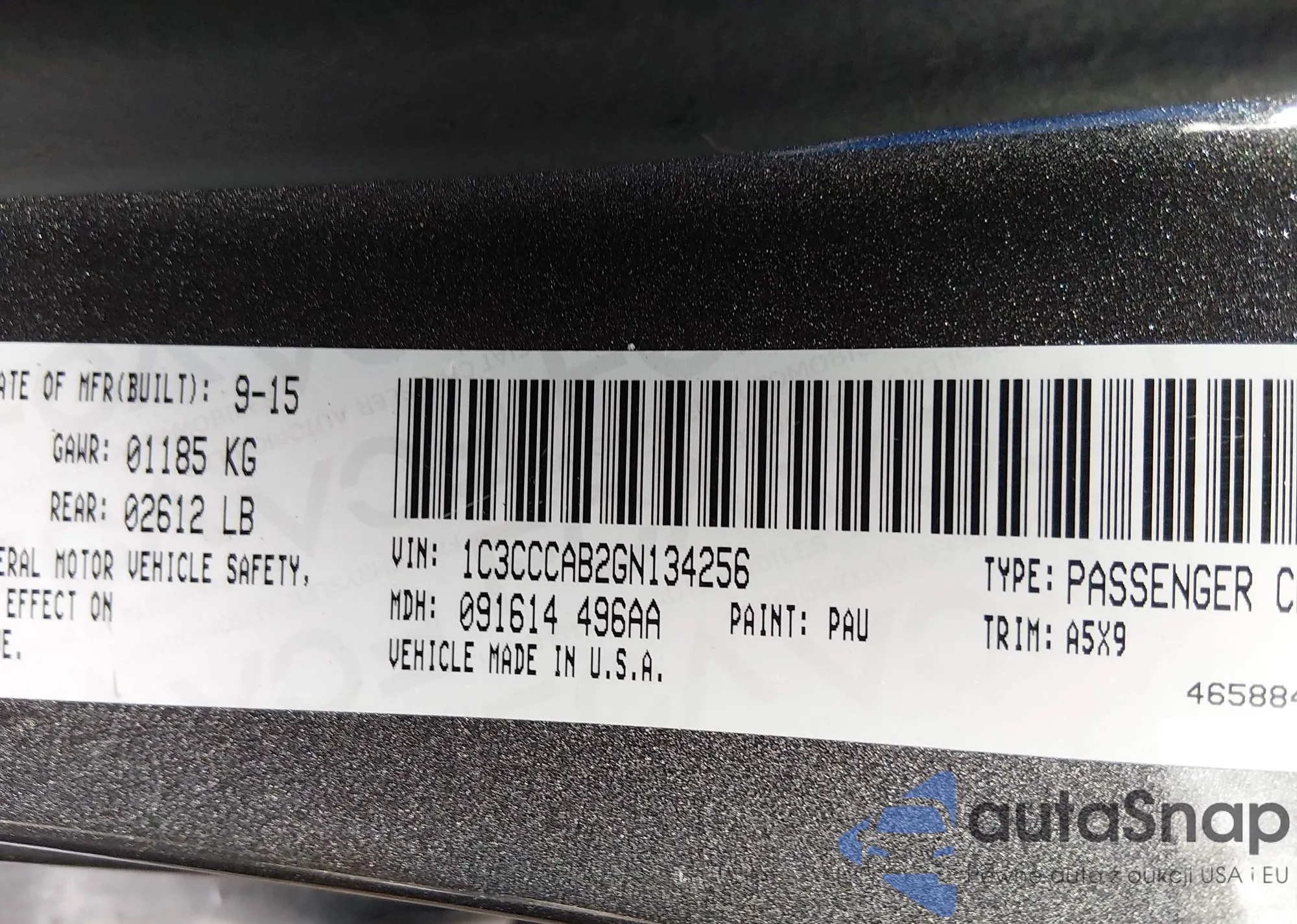 LOT: 95383425 VIN: 1C3CCCAB5GN144036