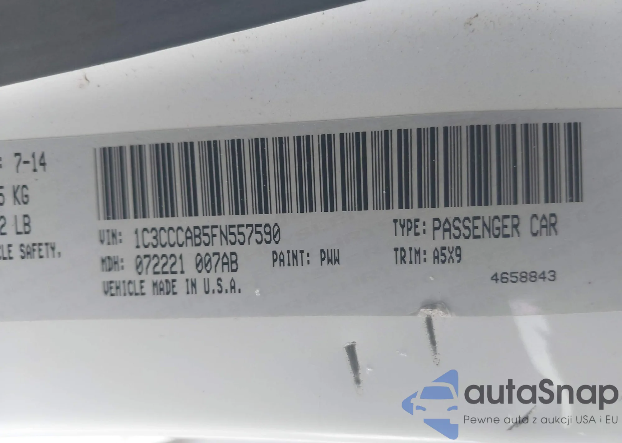 LOT: 43821007 VIN: 1C3CCCAB5FN557590