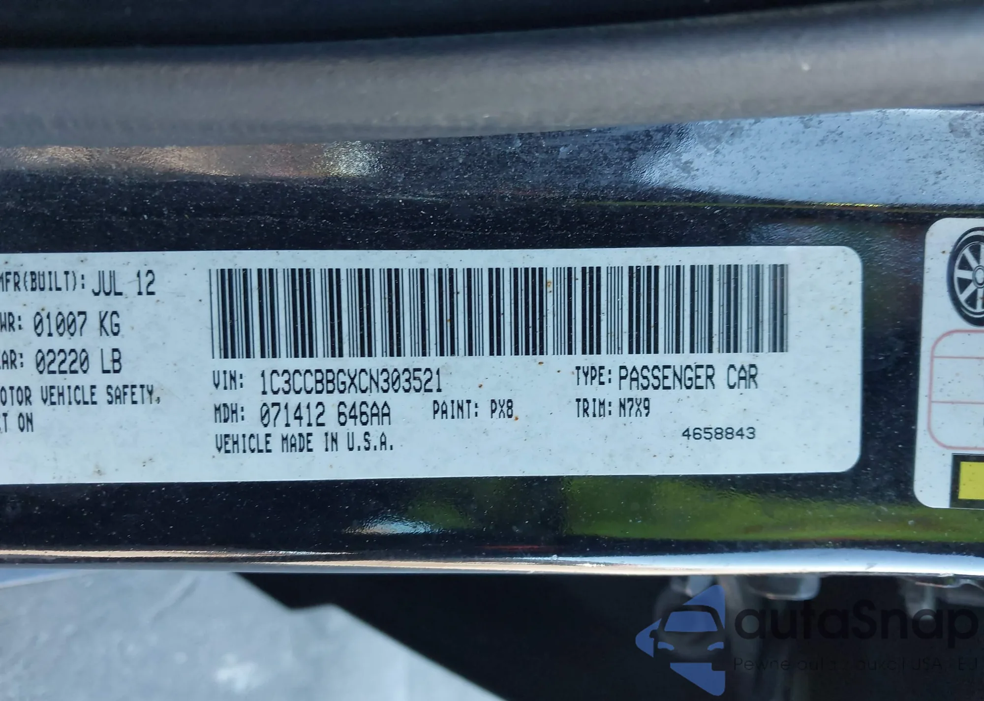 LOT: 44463898 VIN: 1C3CCBBGXCN303521