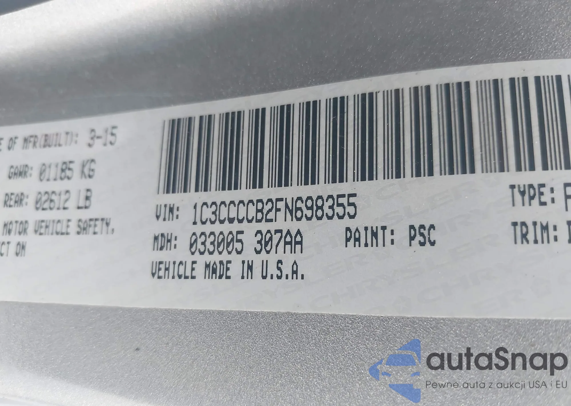• VIN 1C3CCCCB2FN698355