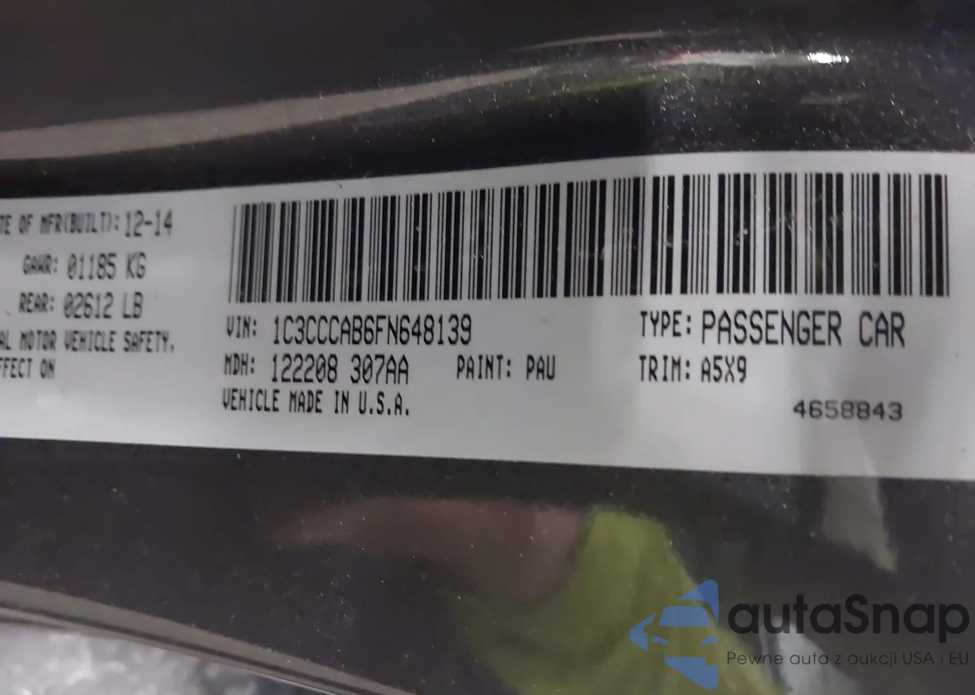 LOT: 44333036 VIN: 1C3CCCAB6FN648139